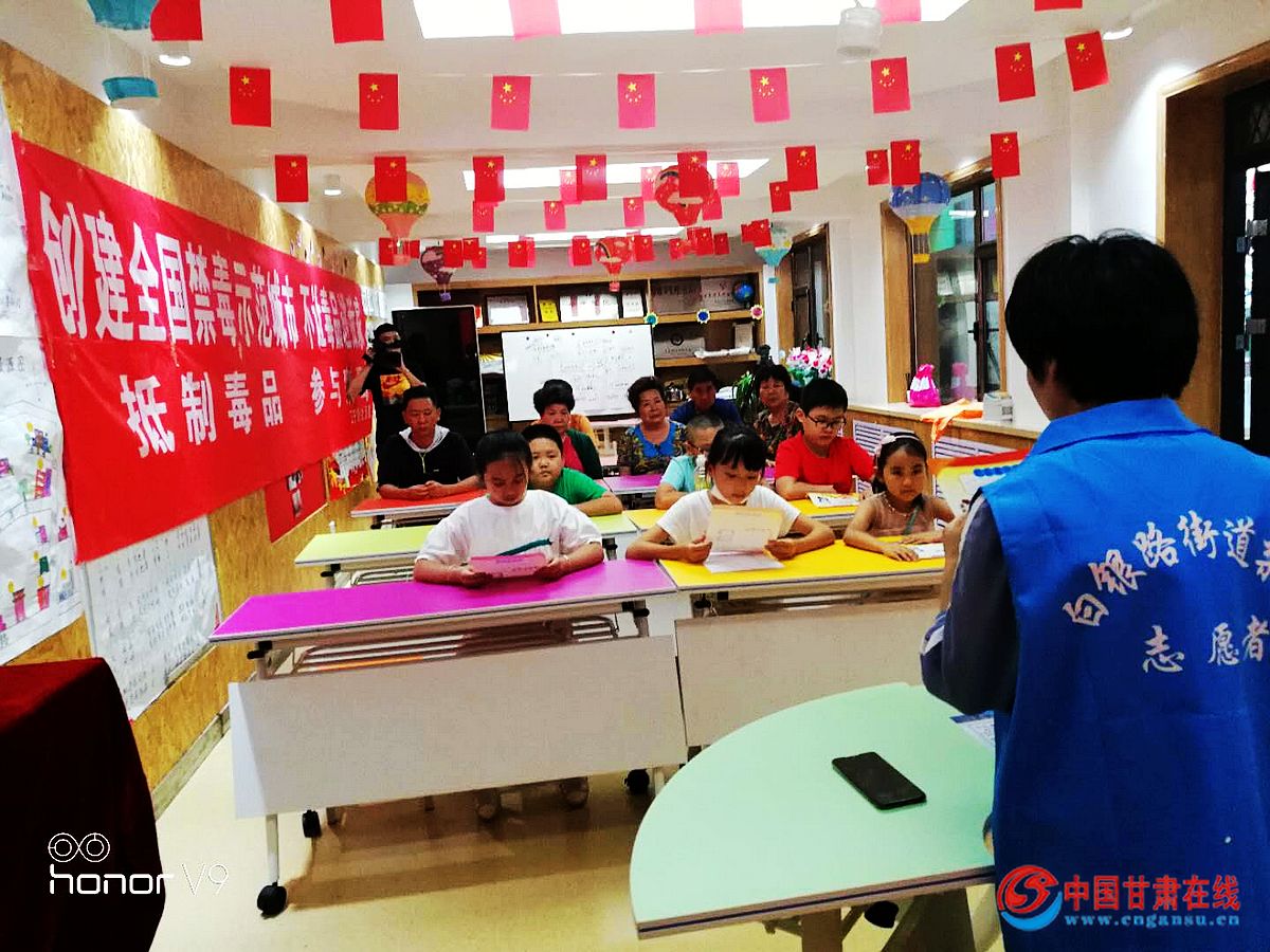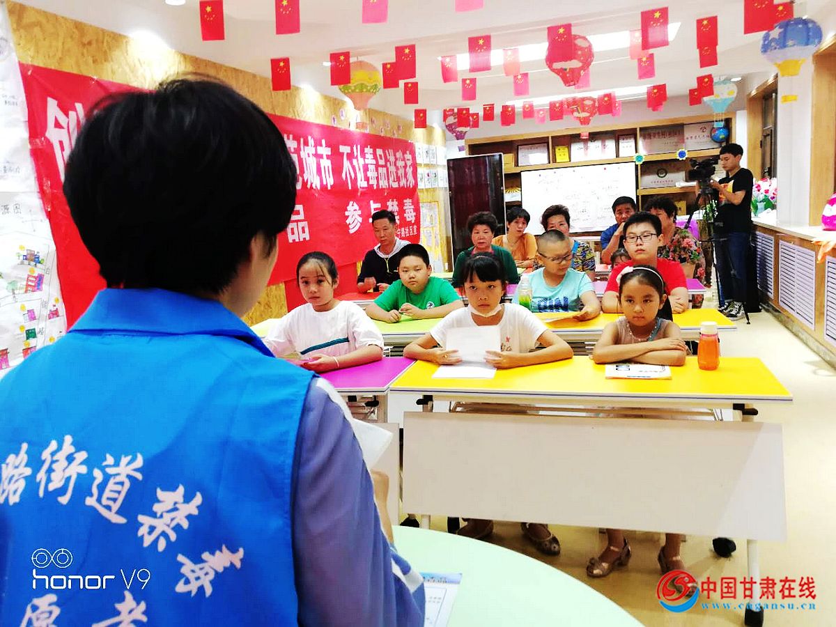 中国甘肃在线兰州讯 为创建全国禁毒示范城市,加强禁毒预防宣传教育工作,提高青少年毒品防范能力,9月10日,兰州市城关区白银路街道正宁路社区组织辖区部分未成年人及家长在三社联动开展禁毒宣传活动。让青少年在参与禁毒宣传社会实践的同时学习禁毒知识。