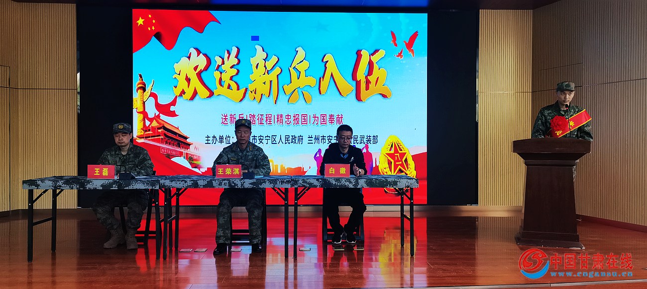 中国甘肃在线安宁讯 红花映笑脸,寄语送征程。9月15日,安宁区2023年下半年新兵入伍欢送大会在省军区综合训练队举行,全体新兵身着戎装、胸佩红花和绶带,笔直的站在会场,目光坚定,精神抖擞,他们将在这里分批次奔赴火热军营,实现从戎报国梦,成为保家卫国、建设国防的新生力量。区人武部上校政委王荣淇、区退役军人事务局局长白徽、各高校征兵工作站、镇街武装部负责人、新兵家长代表和全体新兵参加此次欢送大会。