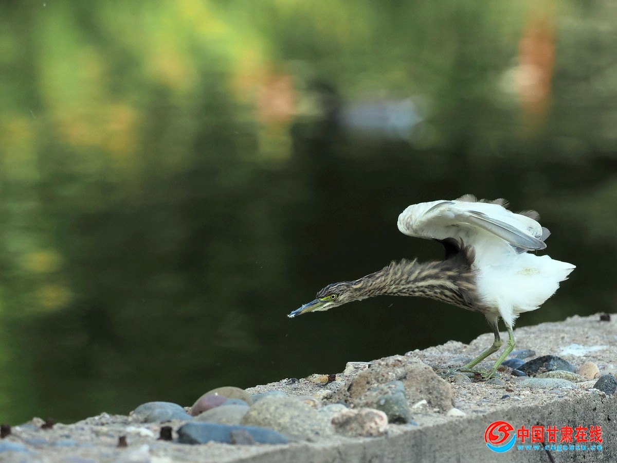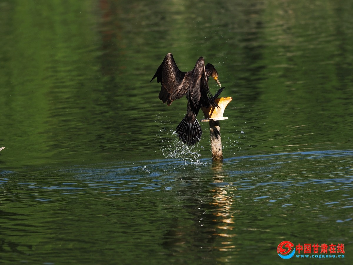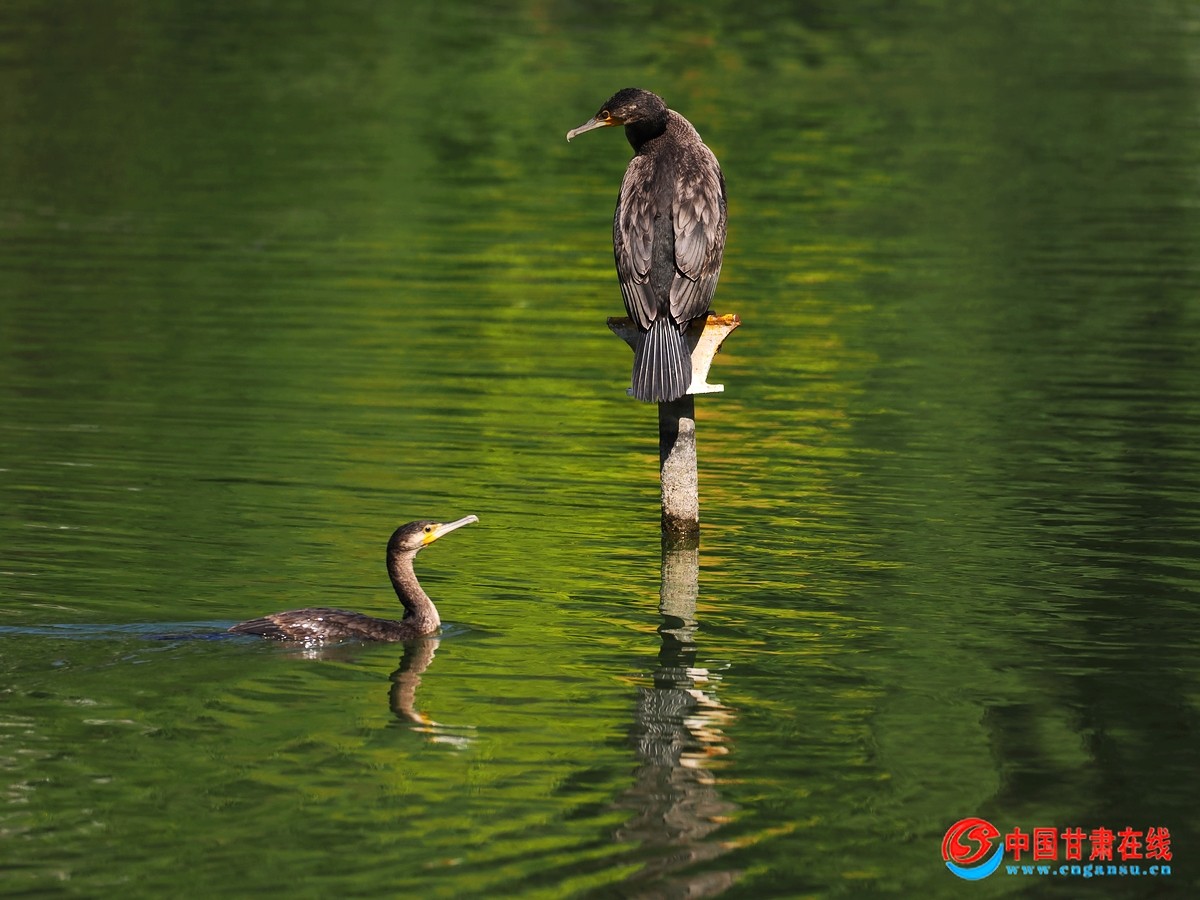 中国甘肃在线兰州讯 10月9日,闻兰州市小西湖公园飞来了鸬鹚,两只鸬鹚与池鹭在湖面抓鱼的身姿,吸引了游客们驻足观赏。