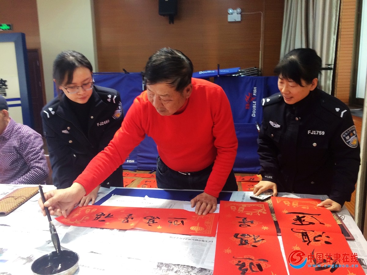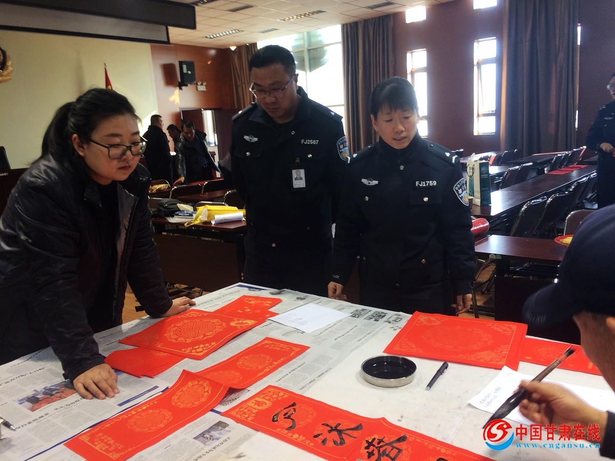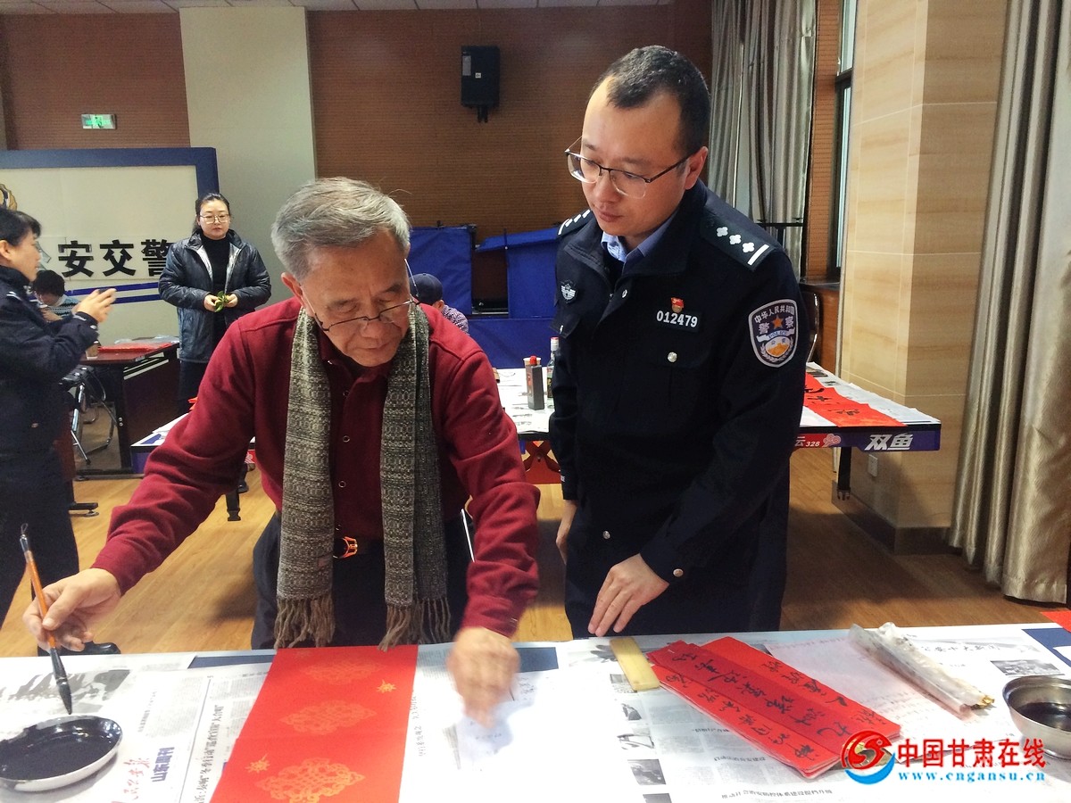 仅上午半天的时间,书写大小春联、福字数百副(幅)。 写春联、送福字活动取得圆满成功,并受到大队民辅警的一致好评。