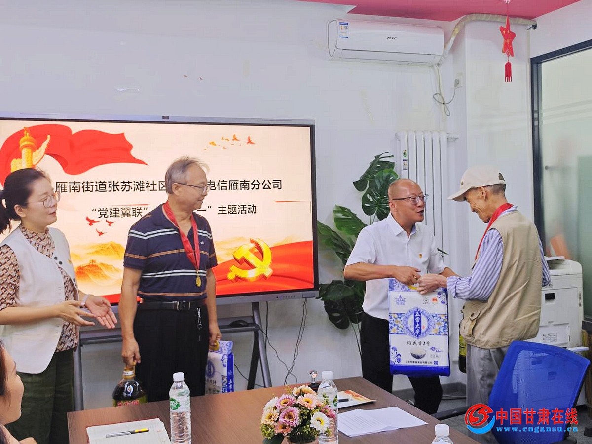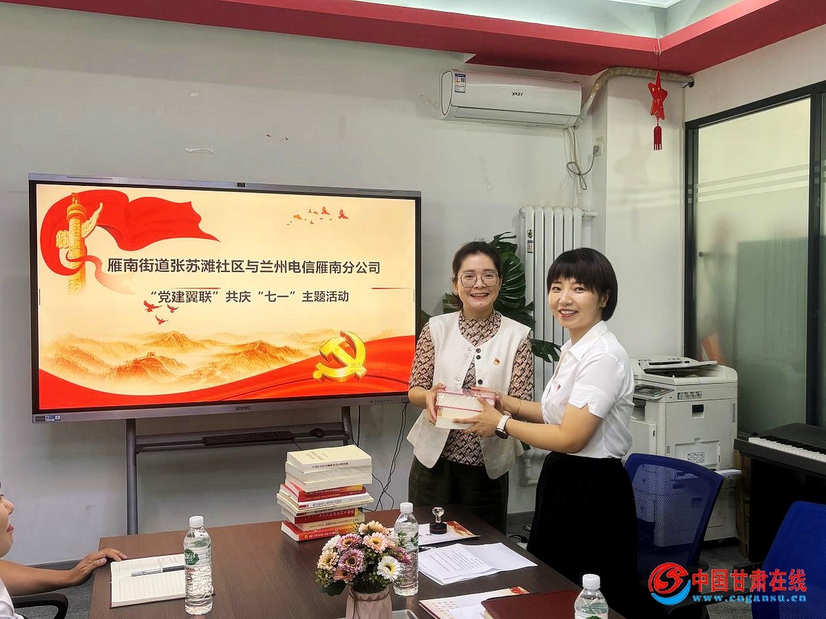中国甘肃在线兰州讯 光辉的七月,我们迎来了伟大的中国共产党第104个华诞!百年征程波澜壮阔,百年初心历久弥坚。在“七一”建党节来临之际,为深入贯彻落实党的二十大精神,持续推进作风建设走深走实,兰州市城关区雁南街道张苏滩社区党委联合辖区单位兰州电信雁南分公司党支部于“七一”前夕共同开展系列活动,以理论学习筑牢思想根基,以慰问关怀传递组织温暖。