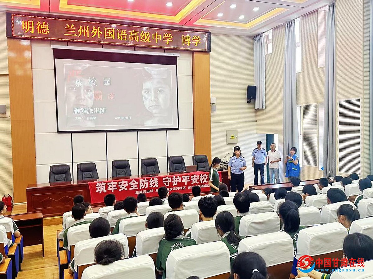 中国甘肃在线兰州讯 为进一步增强青少年法治观念和安全意识,营造平安和谐的校园环境。9月3日下午,兰州市城关区雁南街道沙洼河社区联合辖区派出所在兰州外国语高级中学开展以“反诈骗、防霸凌、拒毒品、护安全”为主题的“开学第一课”秋季学期主题教育活动。