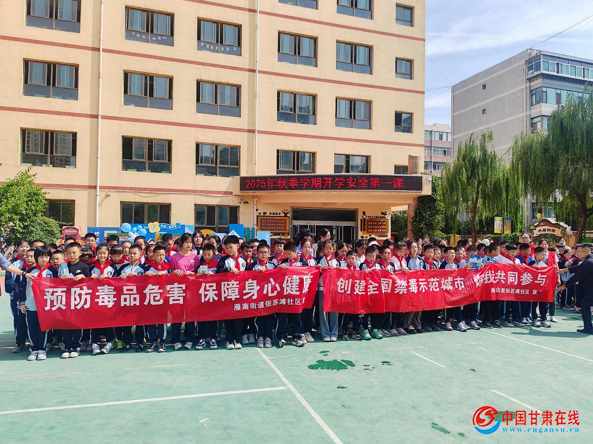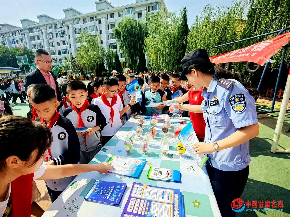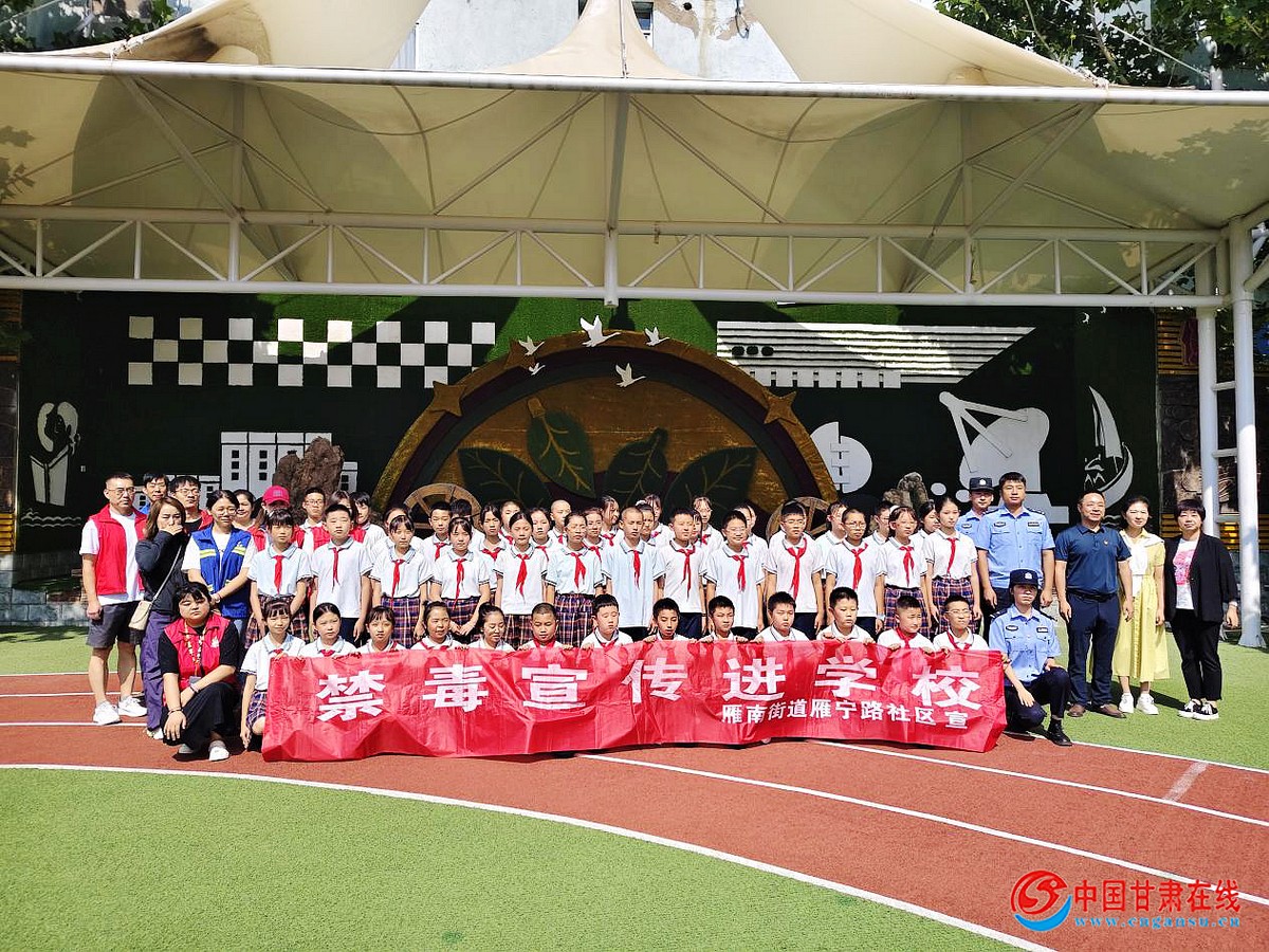 中国甘肃在线兰州讯 为切实增强青少年的识毒、防毒、拒毒意识,营造安全、健康、和谐的校园环境,自8月25日各校开学以来,雁南街道联合雁滩派出所在辖区雁宁路小学、宁兴小学、四十六中开学典礼上开展了“开学第一课”禁毒宣传活动,为师生们送上了干货满满的“禁毒知识大礼包”。