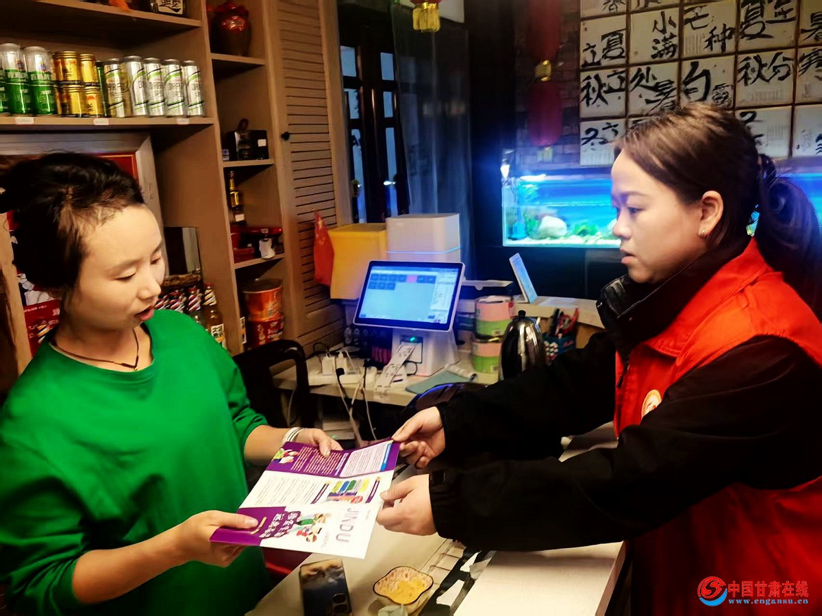 中国甘肃在线兰州讯 为深入推进禁毒“六进”宣传教育工作走深走实,切实压实辖区场所禁毒管理责任,全面提升从业人员与消费者的识毒、防毒、拒毒意识和能力,兰州市城关区雁南街道张苏滩社区禁毒志愿者聚焦沿街商铺、娱乐场所等重点区域,开展精准化禁毒宣传进场所专项活动,织密辖区禁毒安全防线。