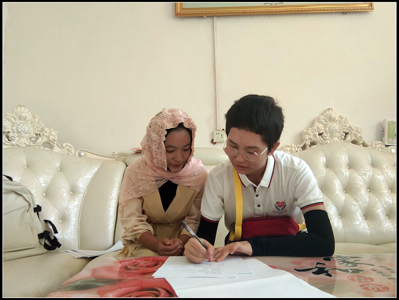 志愿者在深入贫困户进行调研的过程中发现,沙塄沟村的语言以当地汉语方言为主,村里只有不到20%的村民可以讲普通话,而剩余80%的村民可以听懂普通话,但是不会说普通话。据了解,沙塄沟村主要以产业脱贫为主,由于普通话水平的限制,很多村民无法外出务工。针对这一情况,“石榴籽推普脱贫小组”制定了普通话培训方案,对可以听懂但不会讲普通话的村民进行为期三个课时的培训辅导。