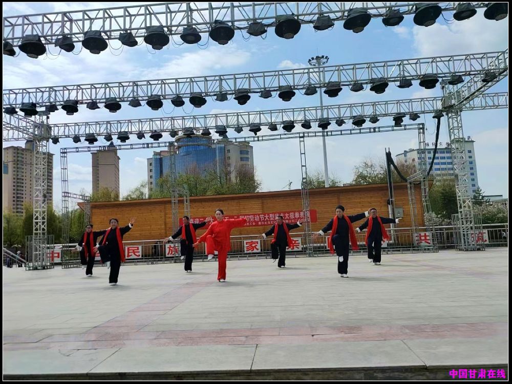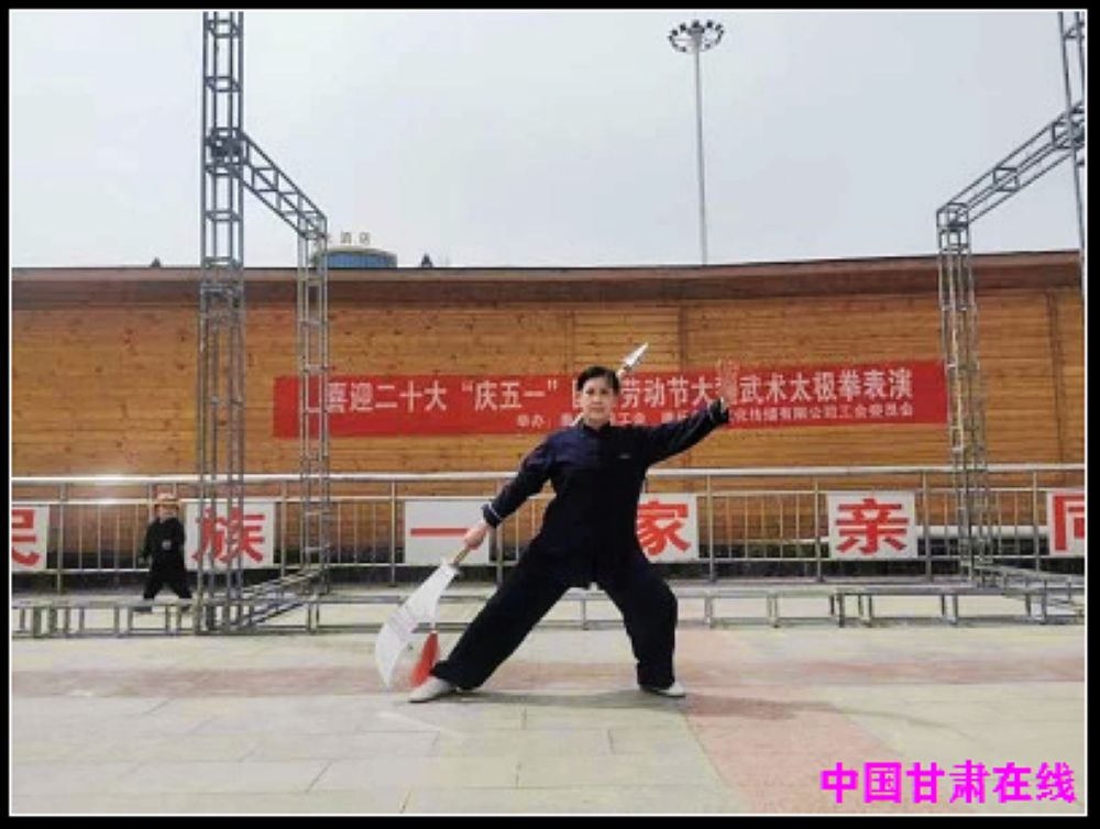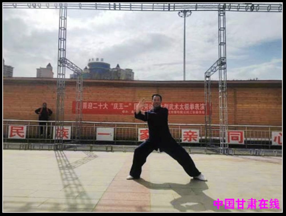 中国甘肃在线康乐讯 4月24日,临夏州康乐县喜迎二十大庆“五一”国际劳动节大型武术太极拳表演活动在花香四溢的县城滨河文化广场举行,干部群众500余人观看了表演。