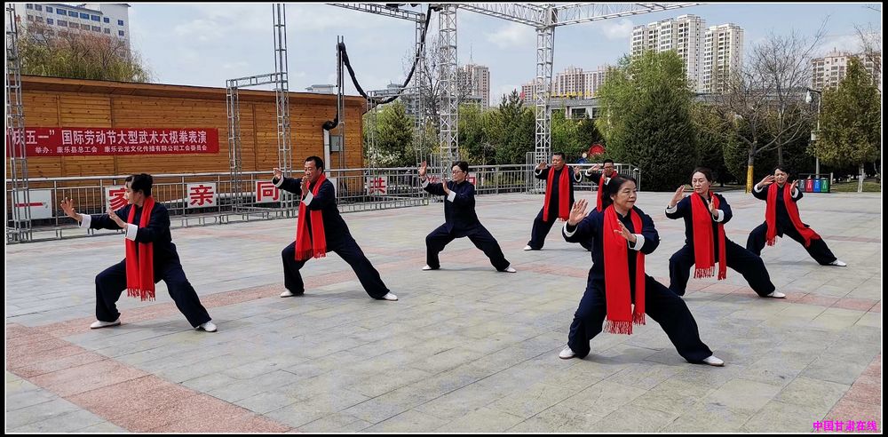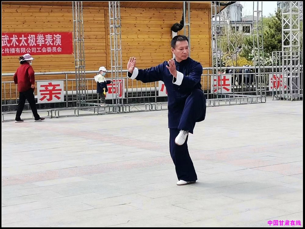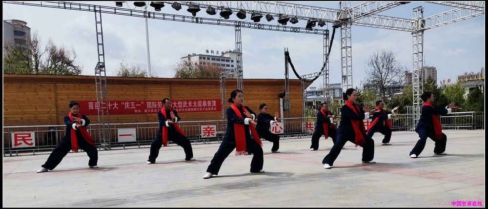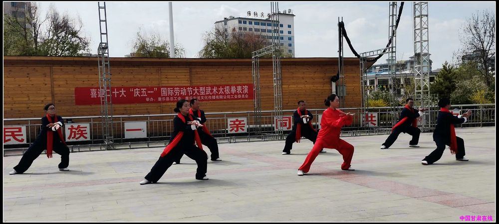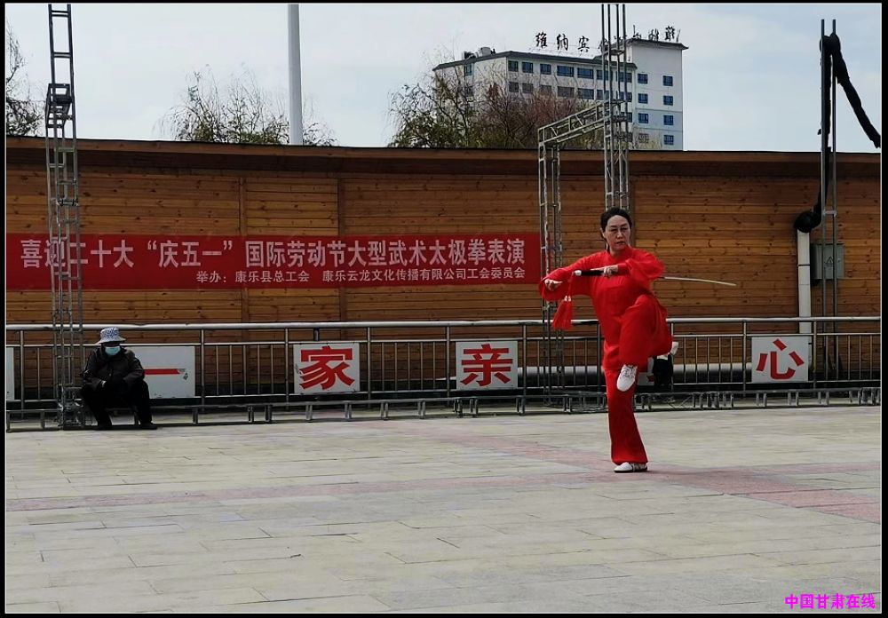 中国甘肃在线康乐讯 4月24日,临夏州康乐县喜迎二十大庆“五一”国际劳动节大型武术太极拳表演活动在花香四溢的县城滨河文化广场举行,干部群众500余人观看了表演。