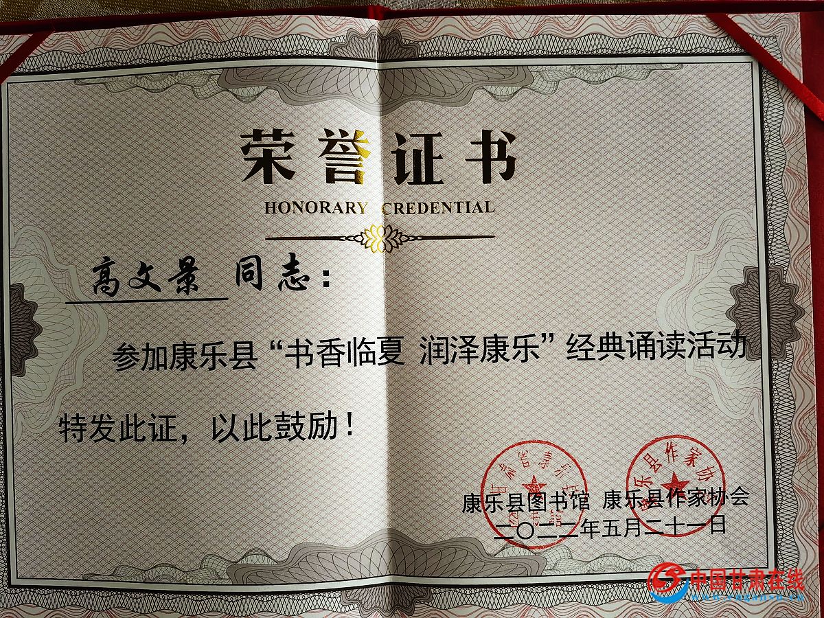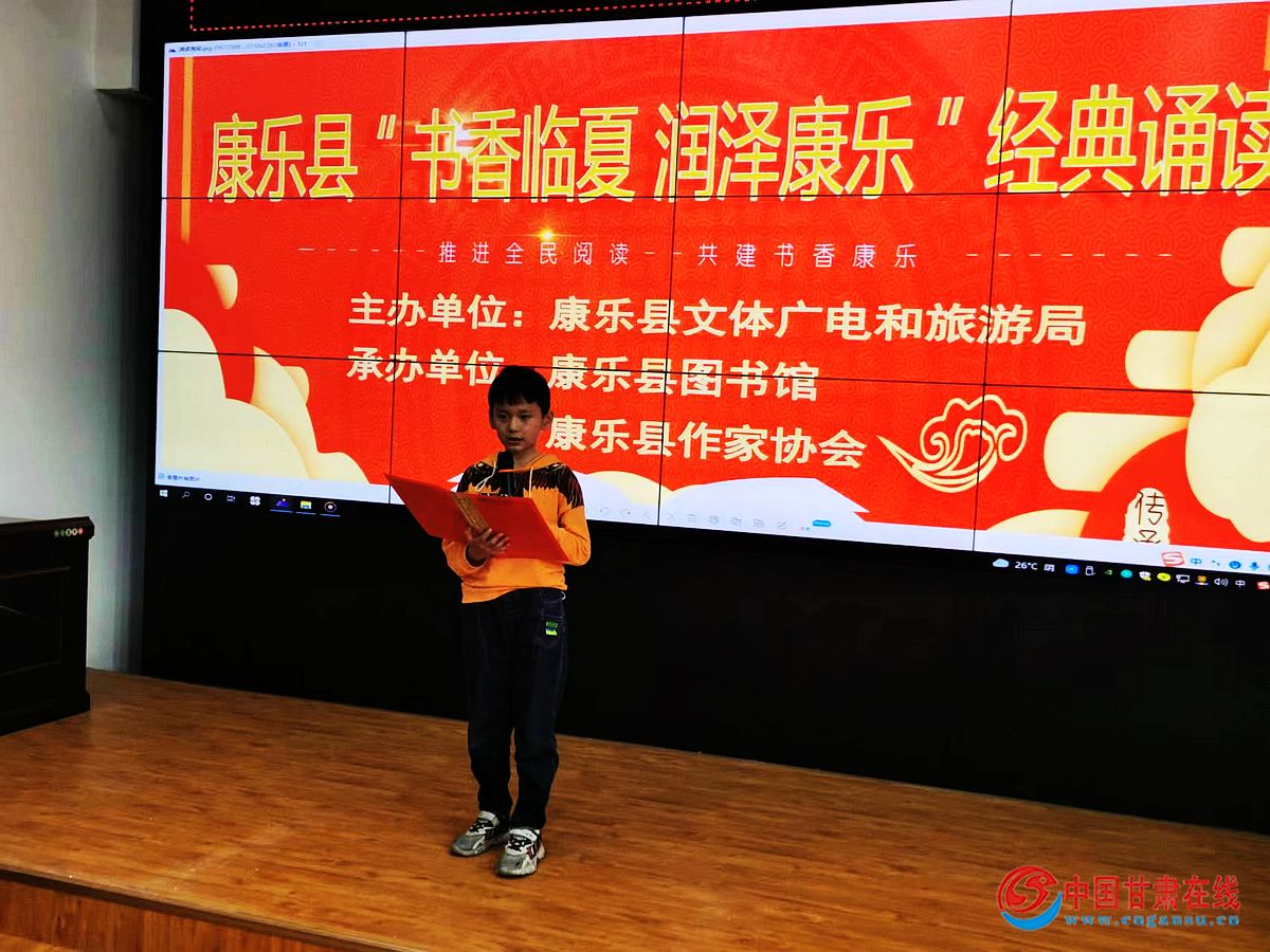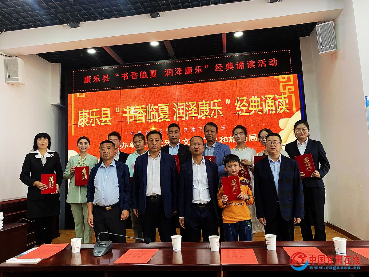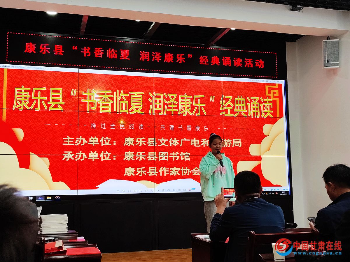 中国甘肃在线康乐讯 为展示新时代“花儿故乡·生态康乐”文化旅游品牌新形象、着力打造“书香临夏·润泽康乐”品牌,讲述民族团结好故事,讴歌幸福美好新康乐,在全社会大力营造爱读书、读好书、善读书的社会风尚,2022年5月21日,临夏州康乐县举行“书香临夏·润泽康乐”经典诵读活动,县文联三级调研员、县作家协会主席马晓春,县文旅局副局长周安辉,县图书馆馆长范军,11名参赛选手和全县文艺爱好者60余人聆听了朗诵。