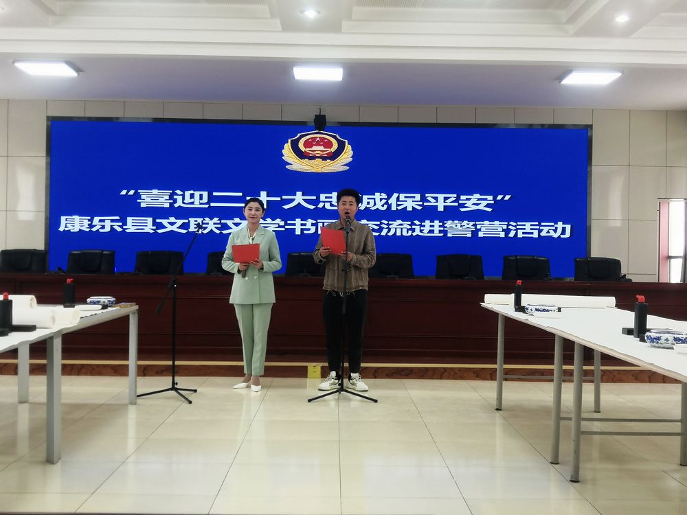 随后,举办了“喜迎二十大 忠诚保平安”康乐县文联主题文学书画交流进警营活动。县作家协会会员朗诵了《纪念毛泽东在延安文艺座谈会上的讲话发表80周年有感》。县书画协会会员现场创作了骨苍劲有力的书法、恢宏大气的山水画。(马晓春)