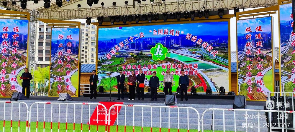 中国甘肃在线康乐讯 5月26日,康乐县第三十二次“全国助残日”活动启动仪式在胭脂湖景区百姓大舞台举行。州残联主要负责人时宁春讲话,县委常委、政法委书记、公安局局长苏宏伟致辞,县人大常委会副主任马如俊,县政协副主席杜春福参加仪式。县政府副县长、县残工委主任马志龙主持仪式。县政府残工委成员单位分管负责人,各乡镇分管负责人、乡镇残联理事长,部分乡镇残疾人专职委员和受助对象,县残联干部职工及部分残疾人参加仪式。