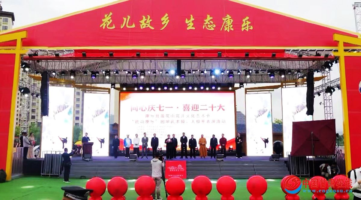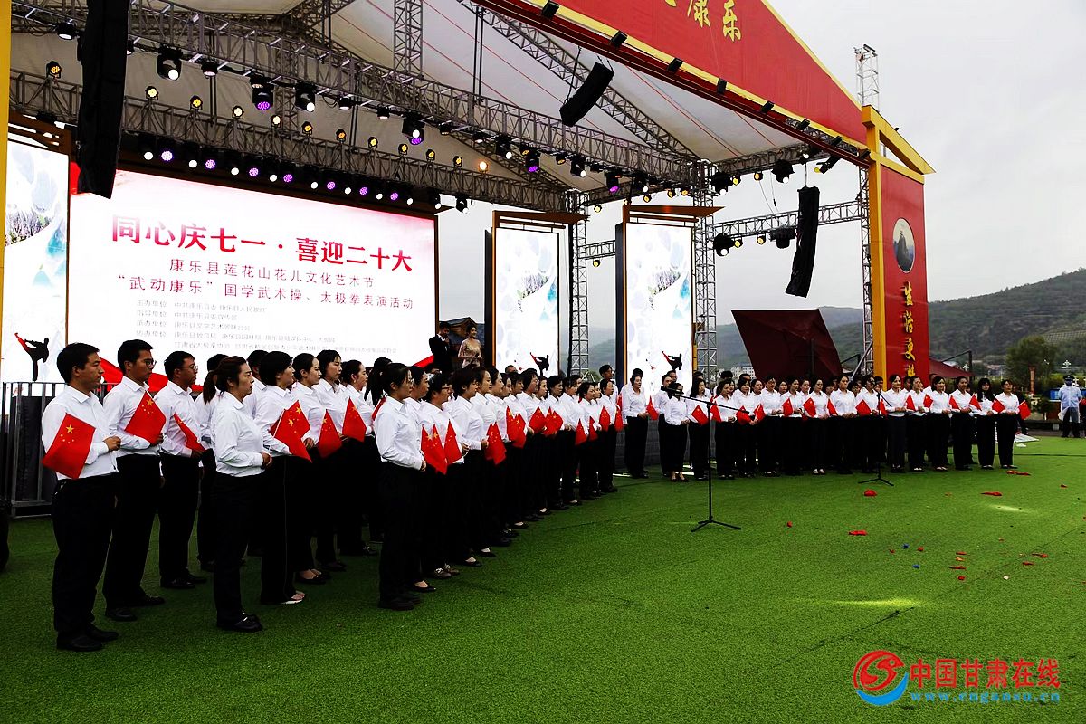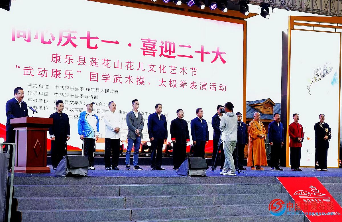 这次活动采用直播的形式同步展开,大屏幕首先播放了全国各地武术名家的祝福和国内知名武术太极大师走进康乐景区展演旅游宣传片。然后,全场观众手握国旗与康乐一中教师一起合唱了《党啊亲爱的妈妈》,为党的生日祝福;康乐中学教师合唱了网红歌曲《锦绣康乐》。随着5名讲解员的甜美推介声,镶嵌在青山绿水间的全县十大旅游名片,在大屏幕徐徐划过、完美呈现,灵动飘逸的身姿,好似幅幅水墨画。国内知名武术太极大师张东武、陈冲、陈志伟、毛红东、雍适旭、朱言奎、王尚伟、马启华,表演了精彩绝伦的《功夫太极》;甘肃精武创新青少年武术俱乐部的小武术家,表演了虎虎生威的武术节目。最后,甘肃省太极拳协会的大师们在胭脂湖领演了《太极拳国标24式》,附城初中、城北学校等2000多名中小学生,在胭脂湖两岸表演了国学《千字文武术操》 ,用武术操打出了青春活力。通过这次活动,探索出一条“国学武术太极文化+旅游”模式,有力地提升了“花儿故乡·生态康乐”旅游品牌。(文\马晓春,图\张国庆、晏志明)