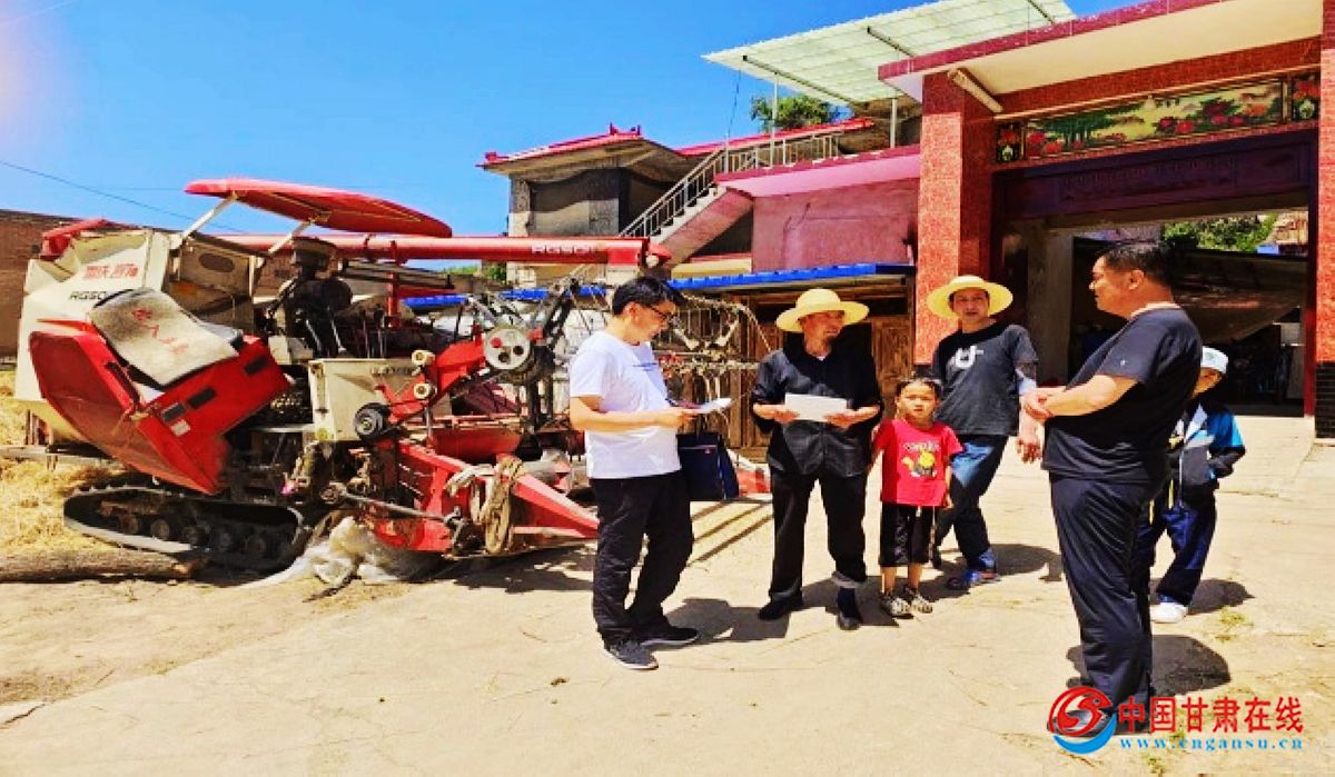 中国甘肃在线康乐讯 盛夏的康乐,麦浪翻滚,五彩斑斓。在康乐县乡村“三夏”农作物抢收的田间地头,到处可见农机技术人员忙碌服务的身影,精心的指导,贴心的服务,为“三夏”农作物抢收“保驾护航”。