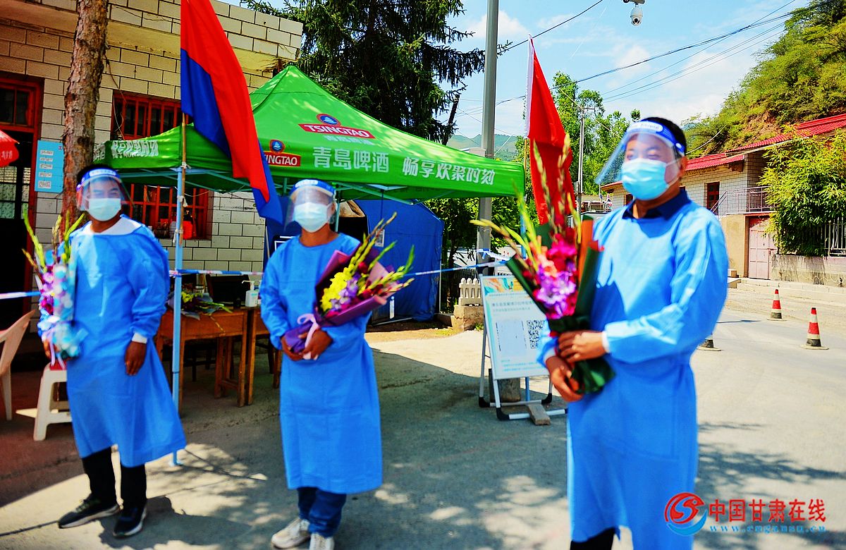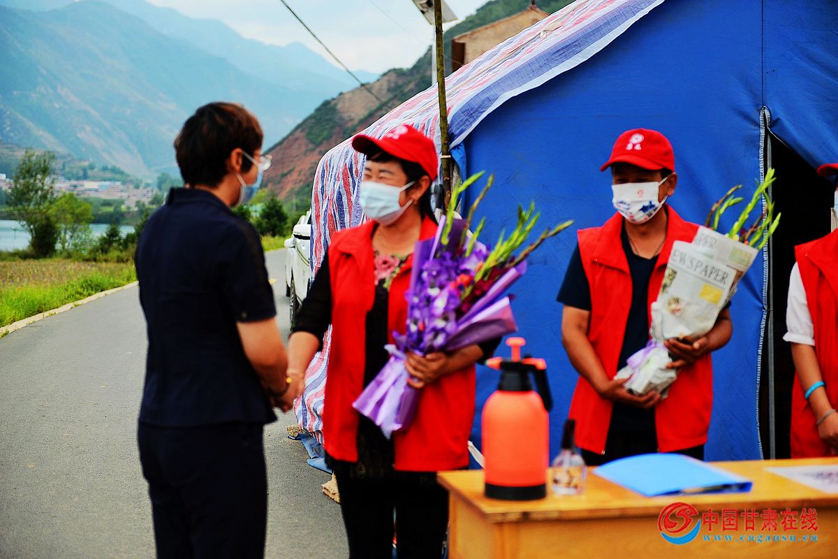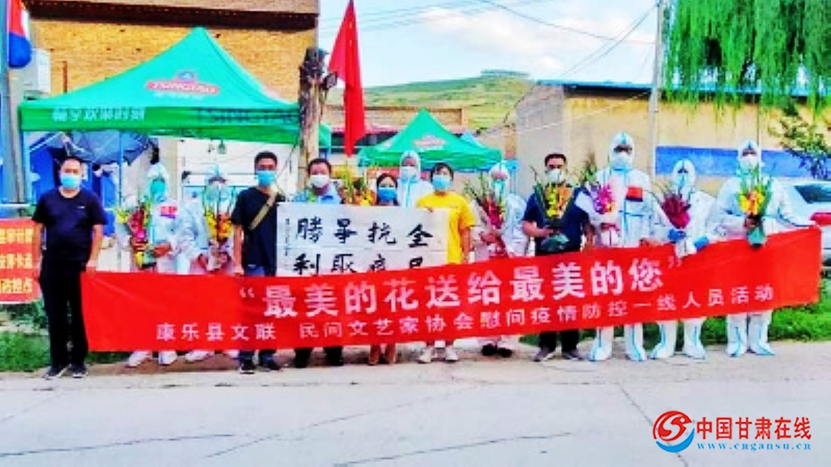 中国甘肃在线临夏讯 “杆一根两根杆,日夜坚守第一线,文联慰问暖心田,众志成城疫情散。”8月3日,当值守在莲麓镇蛇路村防疫卡点的文艺志愿者文香莲接过县文学艺术界联合会、县民间文艺家协会送来的鲜花和方便面等慰问品时,激动地用莲花山花儿来表达感激之情。当天,县文联向莲麓至冶力关防疫卡点和蛇路村防疫点、良友小区防疫点等送去30多束包装精美的鲜花和抗疫书法作品。