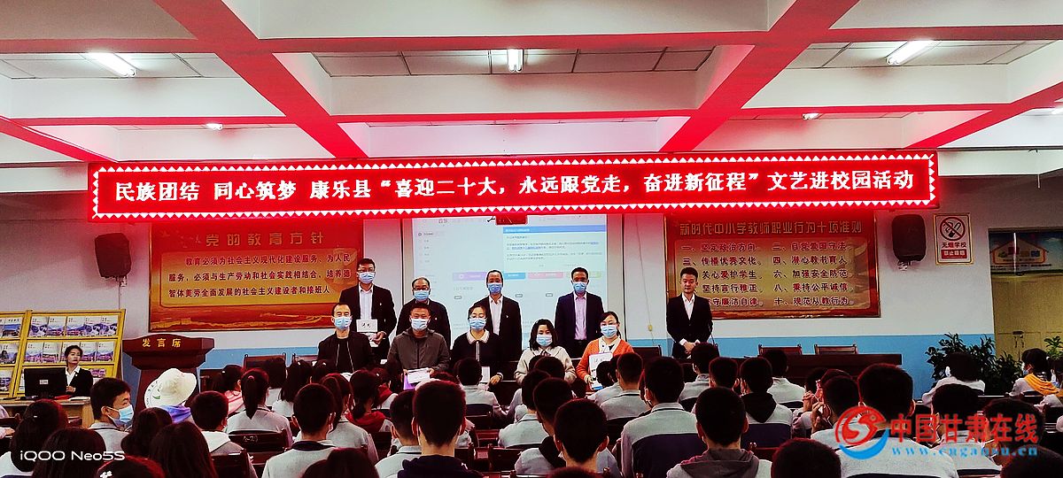 中国甘肃在线康乐讯 金秋时节,果蔬飘香。10月5日至6日,康乐县“喜迎二十大,永远跟党走,奋进新征程”文艺进校园活动,在景古小学、莲麓小学、附城初中、新治街小学、康乐一中相继举行。