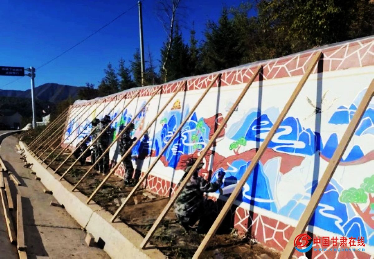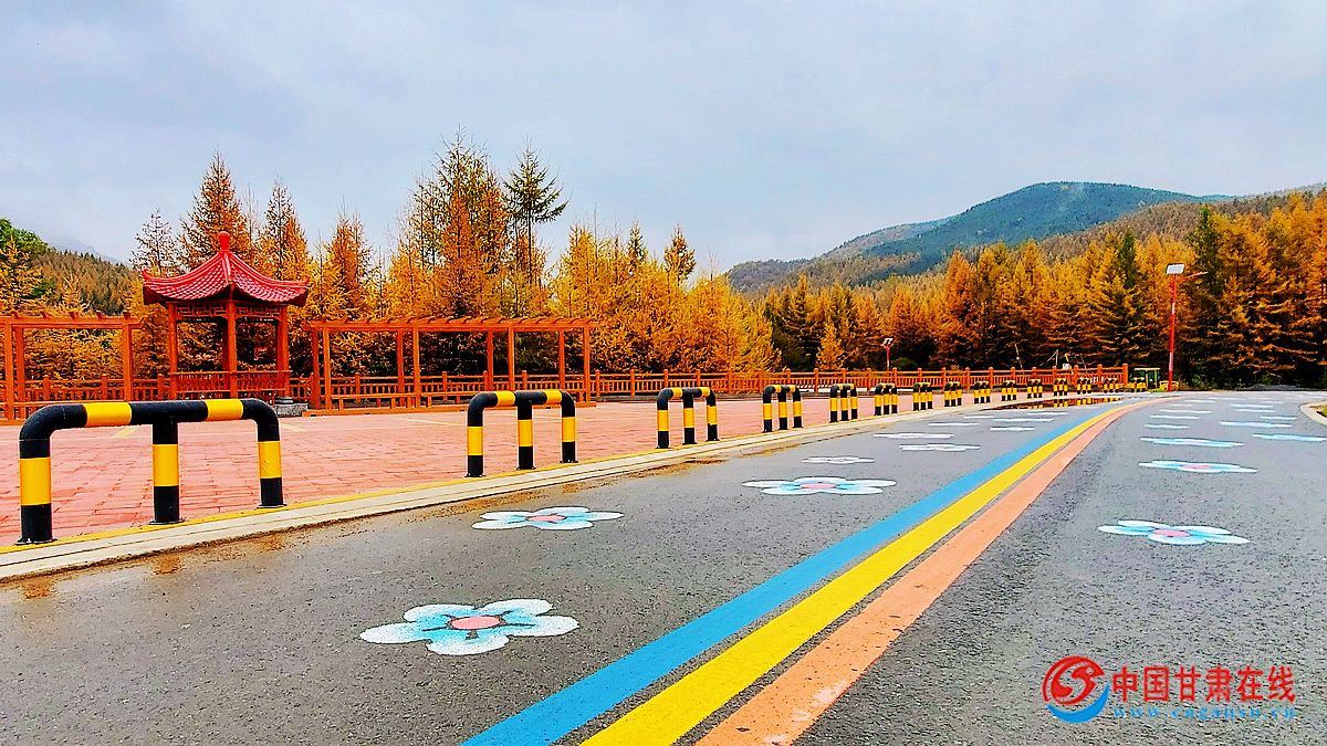 中国甘肃在线康乐讯 深秋的康乐,山峦叠嶂,层林尽染。车行药水峡至草长沟景区段的旅游大通道上,只见路旁墙体上彩绘的貂蝉、赤兔马、蓝川城等栩栩如生,恰似一幅幅活着的史画册;路面上绘画的枫叶、玫瑰、花朵等异彩纷呈,展开一张张优美的五彩画。一面面文化墙、一段段彩绘路,将自然美景和文化元素的完美组合,全面提升了旅游文化内涵,将云端丝路沿太子山旅游大通道变成百里“画廊”。