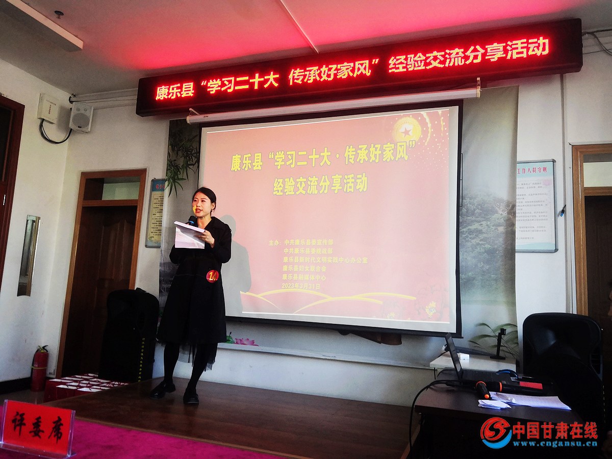中国甘肃在线康乐讯 为深入学习贯彻习近平新时代中国特色社会主义思想和党的二十大精神,积极培育和践行社会主义核心价值观,拓展新时代文明实践工作的方式方法,加强友善、孝敬、诚信、民族团结等中华传统美德教育,3月31日,中共康乐县委宣传部、中共康乐县委统战部、康乐县新时代文明实践中心办公室、康乐县妇女联合会、康乐县融媒体中心举办了“学习二十大·传承好家风”经验分享交流活动。来自各乡镇的13名群众分享了自己的家风家教经验故事,用身边事教育身边人,取得了良好效果。(马晓春)