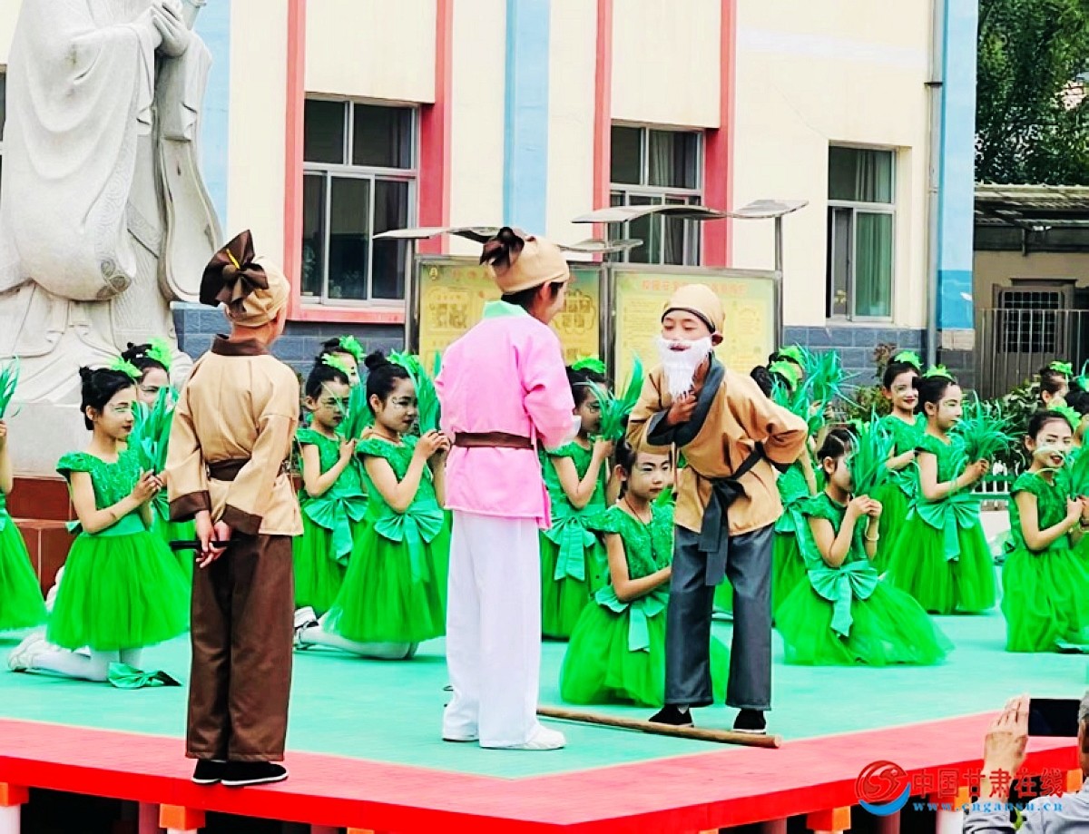 活动中,兰州宏轩文化传播有限公司向学生们赠送了价值7000余元的课外读物、笔记本等300余册,以及篮球12个、足球12个、计数跳绳50套等体育文化用品。康乐县润达文汇综合部赠送了作业本。康乐县作协赠送了《康乐》《河州》等刊物100余本。学校向县作家协会、兰州宏轩文化传播有限公司、康乐县润达文汇综合部赠送了锦旗。之后,县作协优秀会员朗诵了诗歌《我在胭脂湖的月光下等你》《十美康乐,您翩翩走来》等,中华武术传承人表演了传统武术。无论是如同天籁之音的朗诵,还是如梦境一般美妙的演唱,令人心旷神怡,如痴如醉。随后,马思涵等42名同学表演了韵味性十足的戏曲《国粹育新苗》,马嫣蓉等36名同学朗诵了富有创意的《诗词里的英雄》,马秀英等27名同学表演了刻画淋漓尽致的情景剧《揠苗助长》。 精彩绝伦的演出,不时博得师生们雷鸣般的掌声。