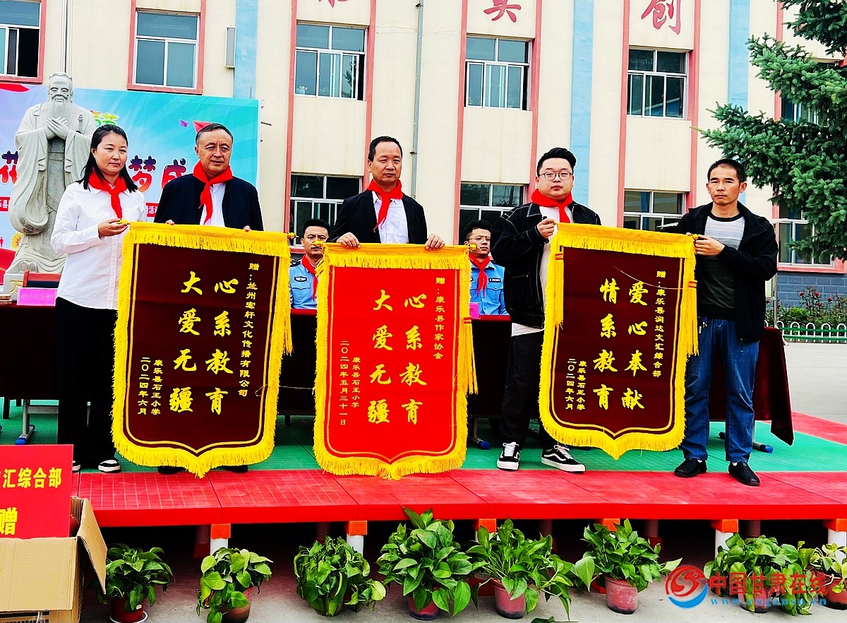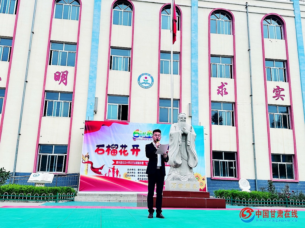 中国甘肃在线康乐讯 六一儿童节之际,5月31日,由兰州宏轩文化传播有限公司协办,康乐县作家协会主办的“石榴花开•筑梦成长”文艺志愿服务暨“红领巾爱祖国”庆六一主题活动在石王小学隆重举行。