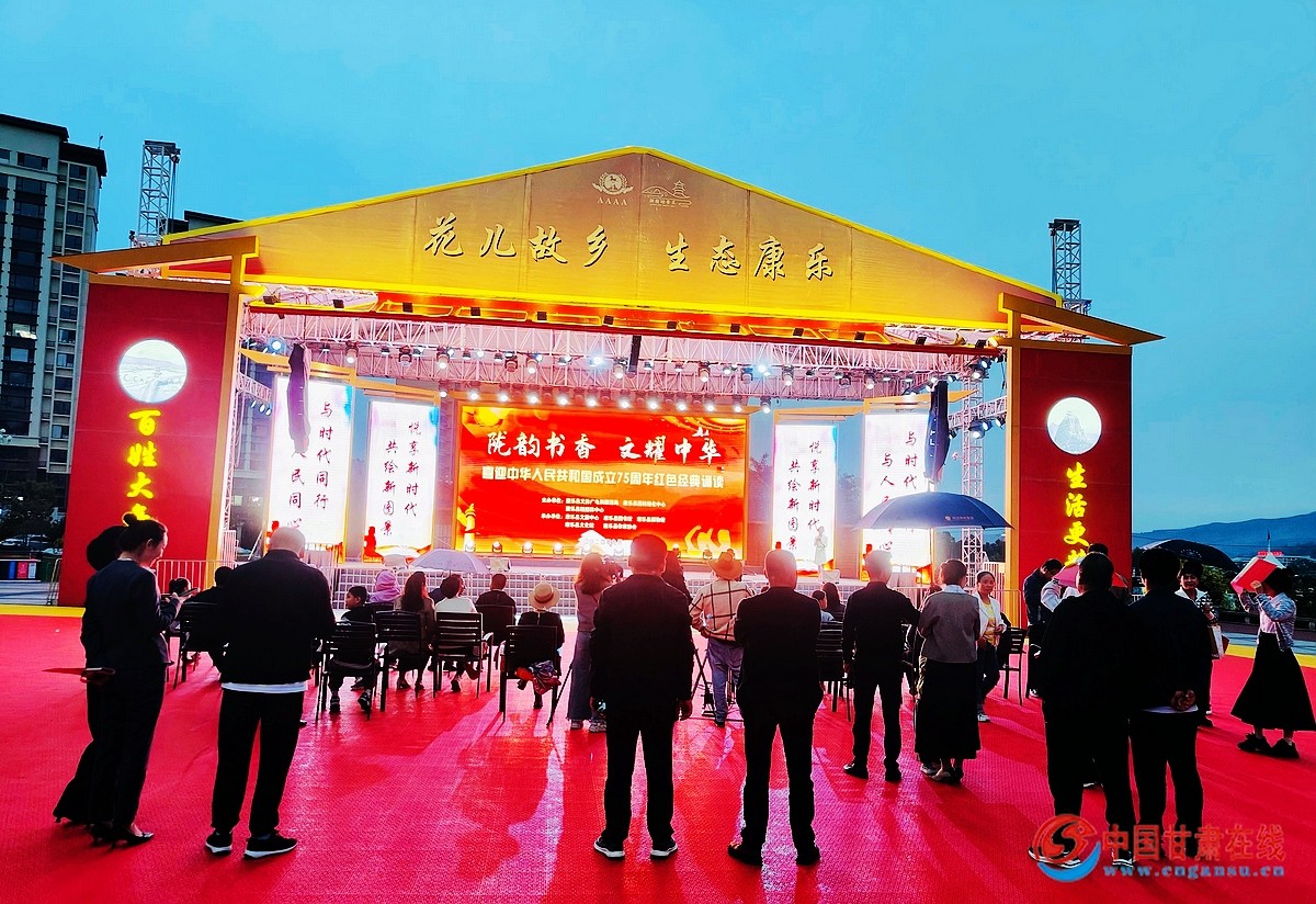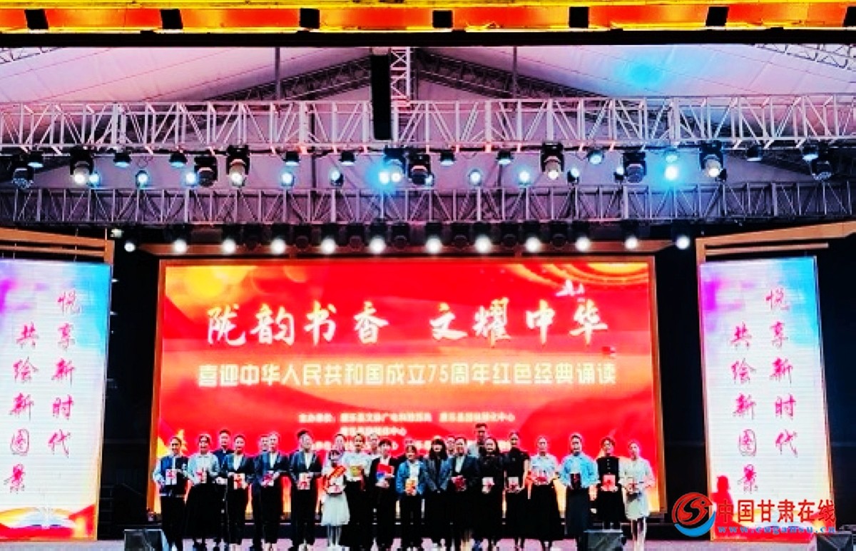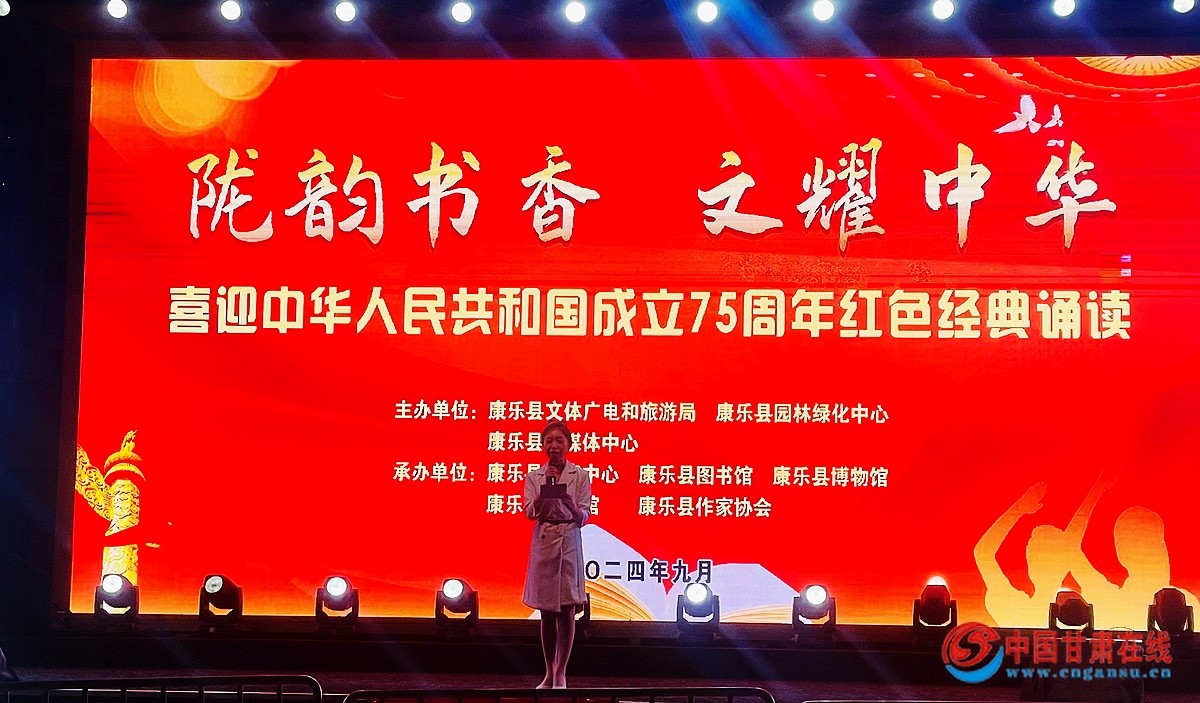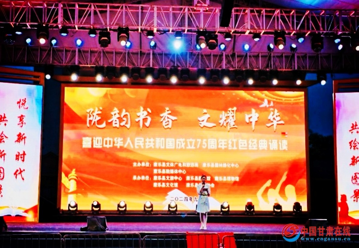 中国甘肃在线康乐讯 2024年9月6日晚,由康乐县文体广电和旅游局、县园林绿化中心、县融媒体中心主办,县文旅中心、县图书馆、县博物馆、县文化馆、县作家协会承办的“陇韵书香 文耀中华”喜迎中华人民共和国成立75周年红色经典诵读活动,在胭脂湖公园百姓大舞台举行。