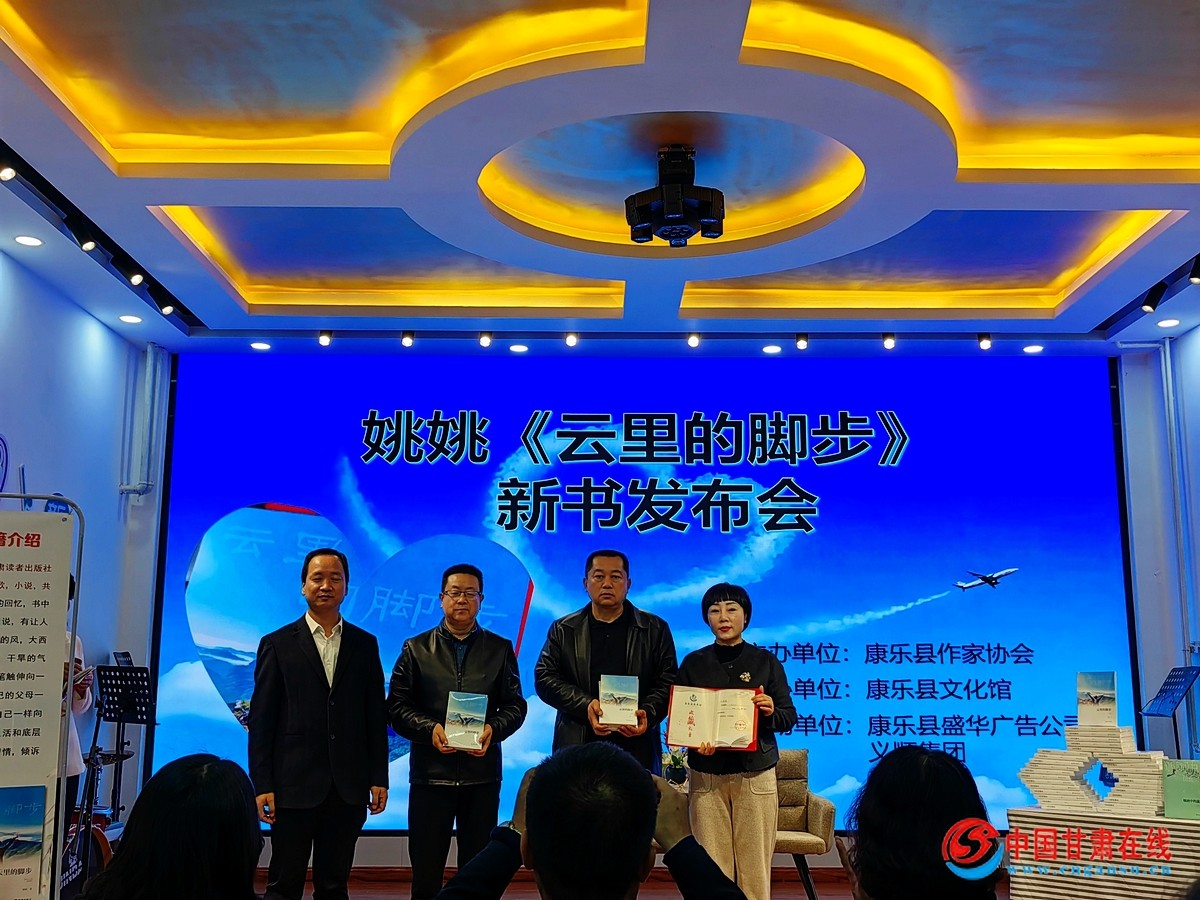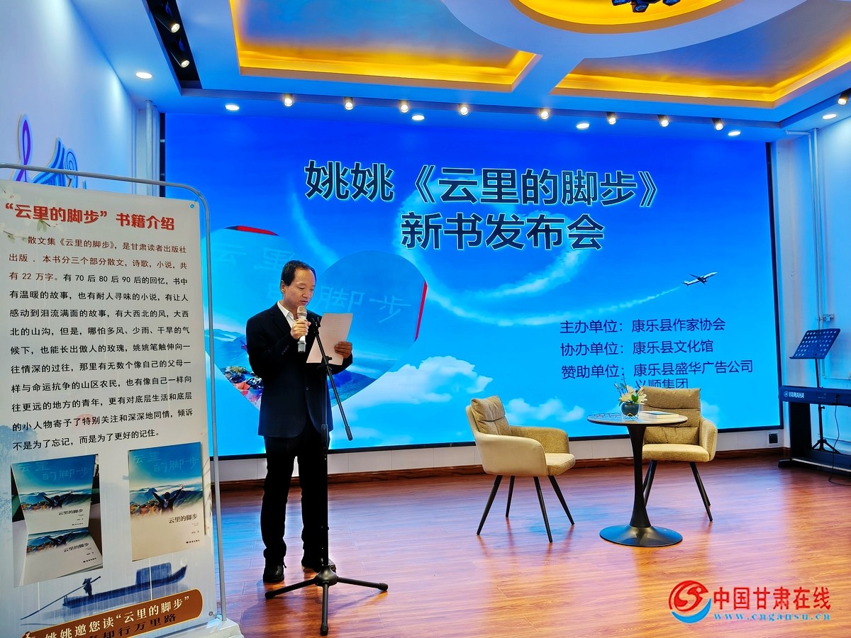 中国甘肃在线康乐讯 2024年11月17日,由康乐县作家协会主办,盛华广告有限公司、鑫晨商贸有限公司赞助姚姚《云里的脚步》新书发布会在县文化馆举行。临夏州人大法制委员会副主任委员、知名网络诗人马力明,临夏州作家协会会员杜翠芳,康乐县文联主席陈玉成,县妇联主席化宏源,县文联三级调研员、县作家协会主席马晓春,县新华书店经理夏冬,县融媒体中心原主任冯海红,县博物馆馆长马正芳,县总工会原副主席常瑞林,县文化馆馆长高向东,县图书馆馆长范军,以及县作家协会会员、部分读者参加。