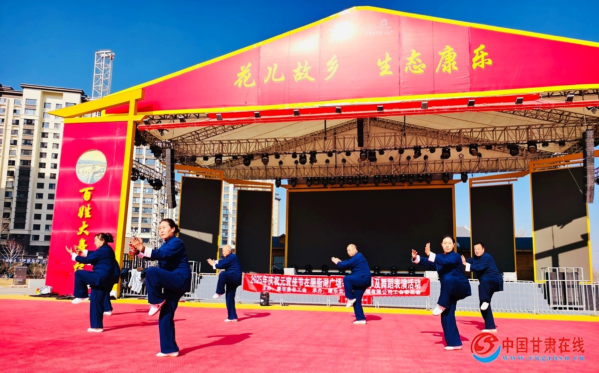 中国甘肃在线康乐讯 2025年2月10日,康乐县庆元宵太极拳暨舞蹈表演活动在胭脂湖景区百姓大舞台隆重举行,现场200余名群众观看了演出。