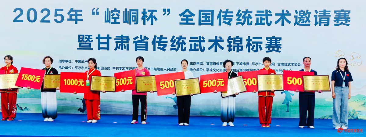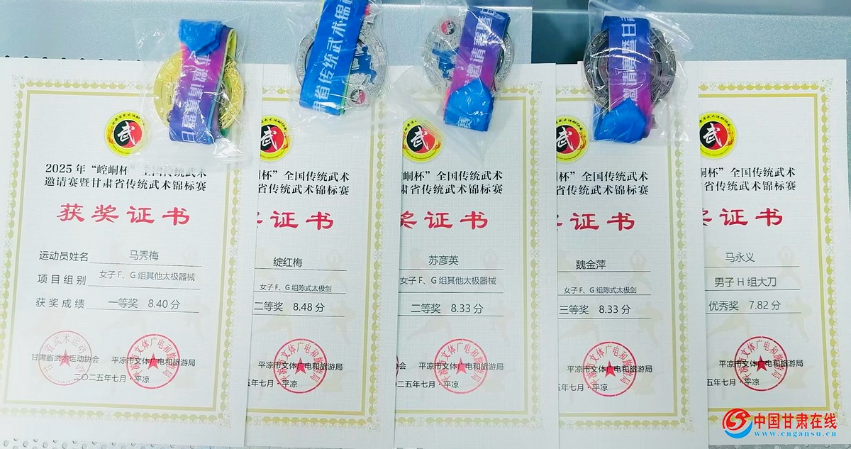 中国甘肃在线康县讯 7月19日至26日,由中国武术协会指导,甘肃省文化和旅游厅、甘肃省体育局,中共平凉市委、平凉市人民政府、甘肃省武术运动协会、甘肃省公路航空旅游投资发展有限公司主办的“崆峒杯”全国传统武术邀请赛暨2025崆峒武术大会在平凉市举行,此次赛事来自全国17个省市,220支代表队,6300多名运动员参加。康乐云龙太极拳馆组织12人参加参赛,夺得19块奖牌。