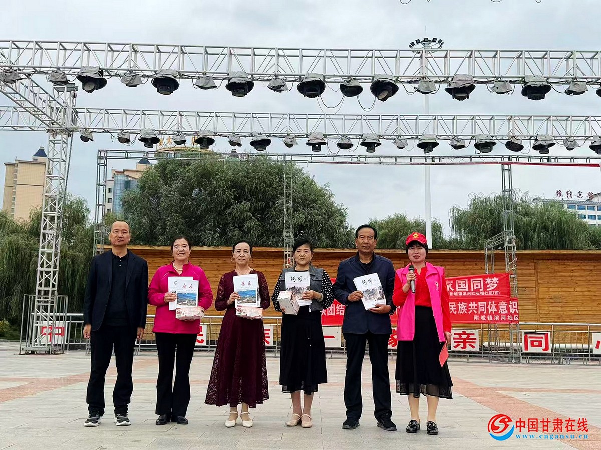 活动由县作家协会会员马兰花主持,红石榴志愿服务队志愿者表演了舞蹈《东方红》《编花篮》和歌伴舞《红太阳照边疆》等内容丰富、精彩绝伦的文艺节目。县作家协会为有奖问答获胜者和读者赠送了《康乐》《河州》等刊物120余本。通过文学进社区赠书活动,进一步丰富了社区居民的精神“菜篮子”,奏响民族团结“同心曲”,共绘民族团结“一家亲”,为国庆献上了一份厚礼。(马晓春)