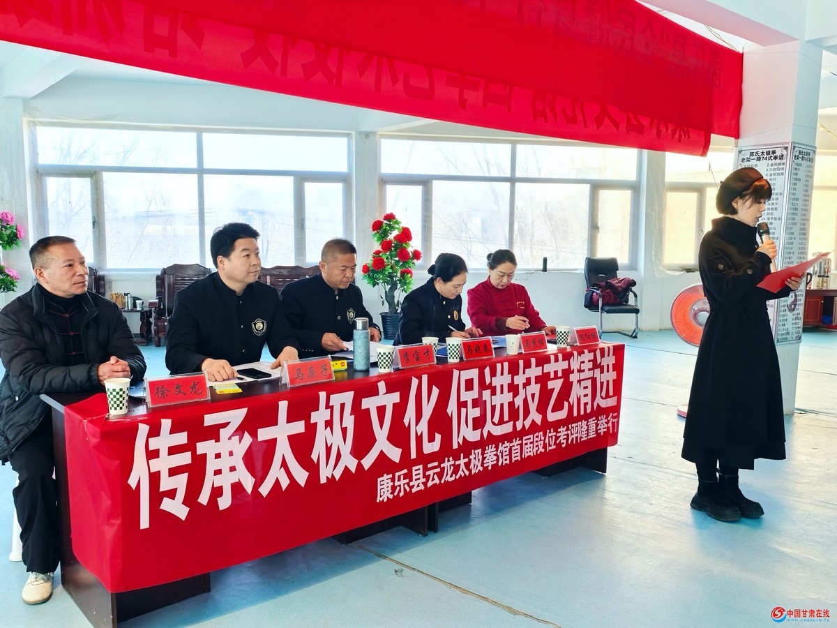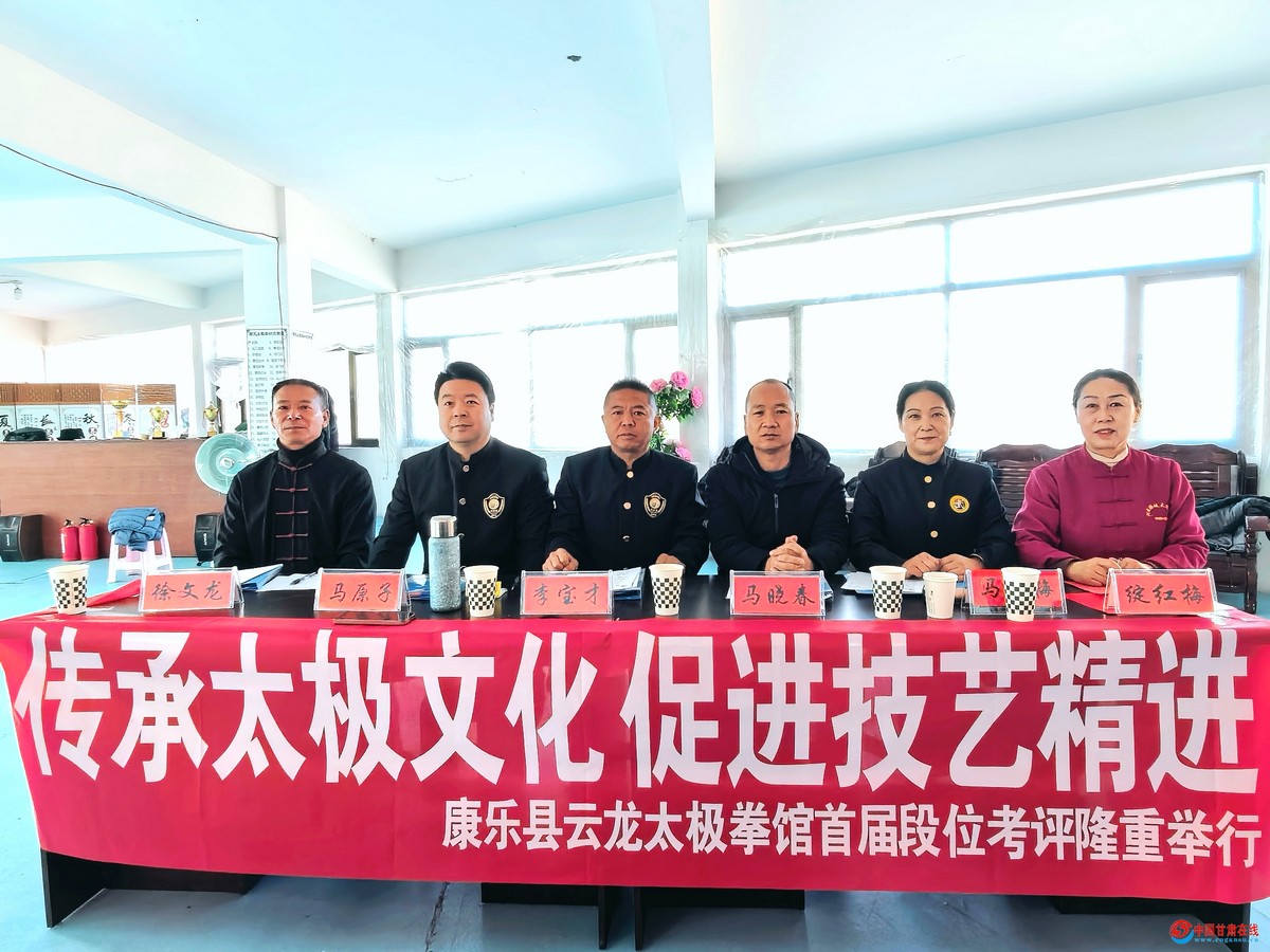 中国甘肃在线康乐讯 2025年11月29日,经中国武术协会批准,受甘肃省武术运动协会委托,康乐县首届武术太极拳段位评定考试活动于云龙太极拳馆盛大举行。定西民间传统武术协会会长李宝才,临夏市武术协会主席、临夏天马武道教育培训中心校长马原子,甘肃省八门拳研究会会员、《中华武魂》编委马晓春,陈氏太极拳第十三代传人、甘肃省武协康乐段位培训中心主任徐文龙,甘肃省武协康乐段位培训中心副主任、康乐县云龙太极拳馆馆长马秀梅,甘肃省武协康乐段位培训中心副主任、康乐县云龙太极拳馆副馆长绽红梅,以及30多位太极拳与武术爱好者共同参与了此次盛会。