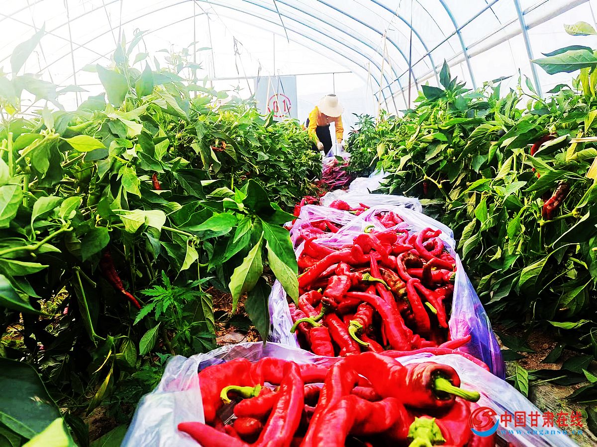 中国甘肃在线崇信讯 初秋的清晨,天边刚露出一丝微光,经过一场夜雨洗礼的锦屏镇东庄村满眼翠绿。眼下正值辣椒采收时节,崇信县锦屏镇东庄村现代循环农业示范园内,辣椒种植大户张飞天不亮就一头钻进了棚里,招呼着工人采摘辣椒,田埂上收辣椒的车已排起了长