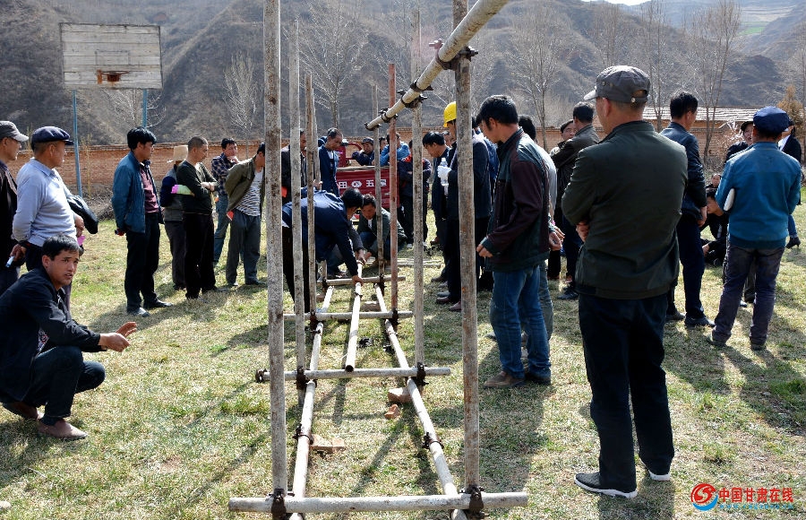 中国甘肃在线陇南讯(文/图:王书昉)4325号图片消息:3月27日,由礼县总工会牵头举办的“春送岗位”暨“就业扶贫创业援助日”招聘会在县总工会联系的驻村帮扶点崖城镇富平村举行。活动当天,县总工会邀请陇南师专继续教育学院的三名教授和华鑫建筑公司的高级技工为该村及附近干柴等三村的近千名群众进行了外出务工的岗位介绍,法律法规宣传讲解,并组织大家开展了家政服务、架子工等实用技术的培训,为参加培训的学员颁发了结业证书。图为当地群众在技术人员的指导下练习操作架子工的培训。 通联:礼县委报道组 王书昉摄
