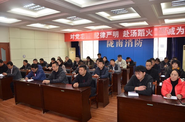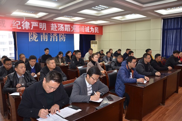为切实确保“不忘初心、牢记使命”主题教育成果落地见效,进一步加强消防监督执法领域廉政建设,规范消防监督人员执法行为,树立消防监督执法队伍良好社会形象。12月16日下午,陇南市消防救援支队武都区大队组织开展“创建人民满意消防救援队伍”活动,此次活动以“向人民报告、对人民承诺、请人民监督”为主题,大队全体消防监督干部面向社会单位述职述廉,辖区消防安全重点单位责任人和消防安全管理人60余名代表参加了大会。