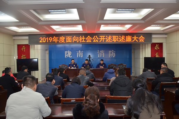 “向人民报告、对人民承诺、请人民监督”---武都区消防大队召开2019年度面向社会公开述职述廉大会