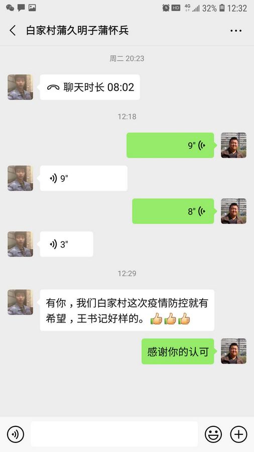 “有你,我们白家村这次疫情防控就有希望,王书记你是好样的。”村民蒲怀兵在微信群里赞了个大拇指。