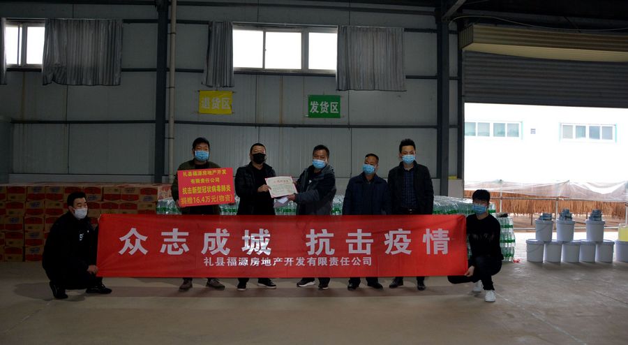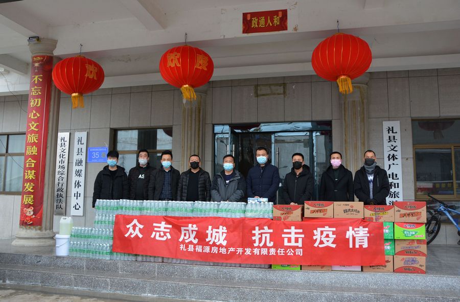 据了解,此次礼县福源房地产开发有限责任公司共为全县抗击疫情期间捐赠了防护服200套、消毒液1000斤及10000桶方便面、20000瓶矿泉水等,并为城关镇山村委会捐款现金2000元用于抗击疫情期间支配使用。