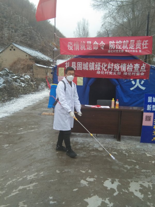 坚守是职责,坚持就是胜利。每天,张小军都在村口值守,准时向卫生院和村上汇报当天人员流动和疫情防控情况,空闲的时候就背上喷雾器到监测点周围喷洒消毒液,通过微信向大家普及疫情防控知识。