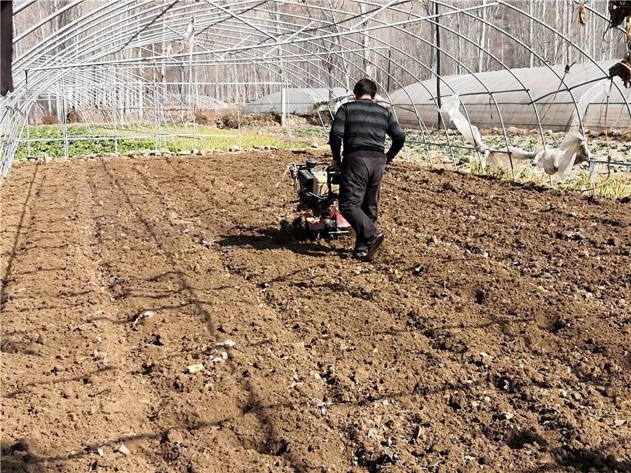 五十岁出头的刘喜得是刘河村的村民,一大早他就推着微耕机在通过村口的疫情防控检测站,进行完体温检测,并在工作人员交待完疫情防护注意事项后,来到田间用微耕机翻整土地,用来种植订单辣椒,发展“五小”产业。他告诉记者,现在国家有了疫情,村里都在加紧防控,镇上为了让我们安心生产,早早的就在喇叭里做了安排,讲了注意事项,你看大家都分开自己种自己的地,不团堆、不聚集,也不耽搁种地。