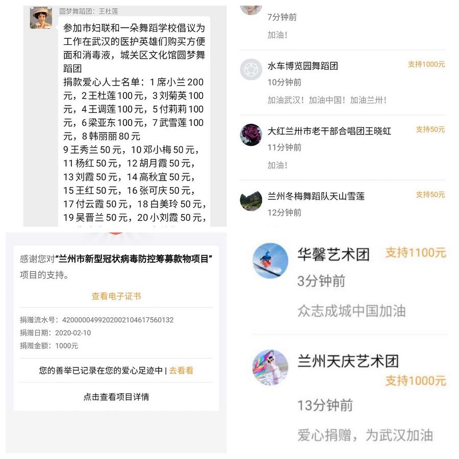 病毒无情,人间有爱;勇毅笃定,战无不胜。辖区文化、体育、旅游企业等社会力量积极响应,纷纷伸出援助之手、通过各种途径向我单位或通过我局向区卫健局、兰州市慈善协会、街道、社区捐赠款物,齐心协力抗击疫情。截止2月16日,甘肃龙行天下国旅、甘肃保利国旅、兰州美吉达国旅、甘肃野谷艺韵文化传播公司、阿米丢文化传播公司、兰州凌志生物技术有限公司等12家企业捐赠一次性口罩、84消毒液、酒精、抑菌洗手液、体温计等价值5万元的防疫用品。在此期间,城关区旅游发展行业协会15家在会企业向甘肃省红十字会、甘肃紧急医疗救援中心、兰州市慈善总会、兰大一院、城关区交警大队、城关区环卫局等疫情防控一线单位捐赠物品金额超30余万元。城关区群文团队也积极响应号召,纷纷以个人名义向兰州市慈善总会捐赠爱心款逾万元。一笔笔汇聚祝福的善款,一件件用于疫情防控的物资,彰显了辖区文体旅企业、群众文化团体的责任担当、城关儿女的大爱情怀。爱心企业家们表示,作为城关区文体旅企业,大灾大难面前要有担当,要尽己所能尽一份责任,这是企业社会责任的体现,而能为疫情防控贡献一己之力,更是城关区企业责无旁贷的义务。
