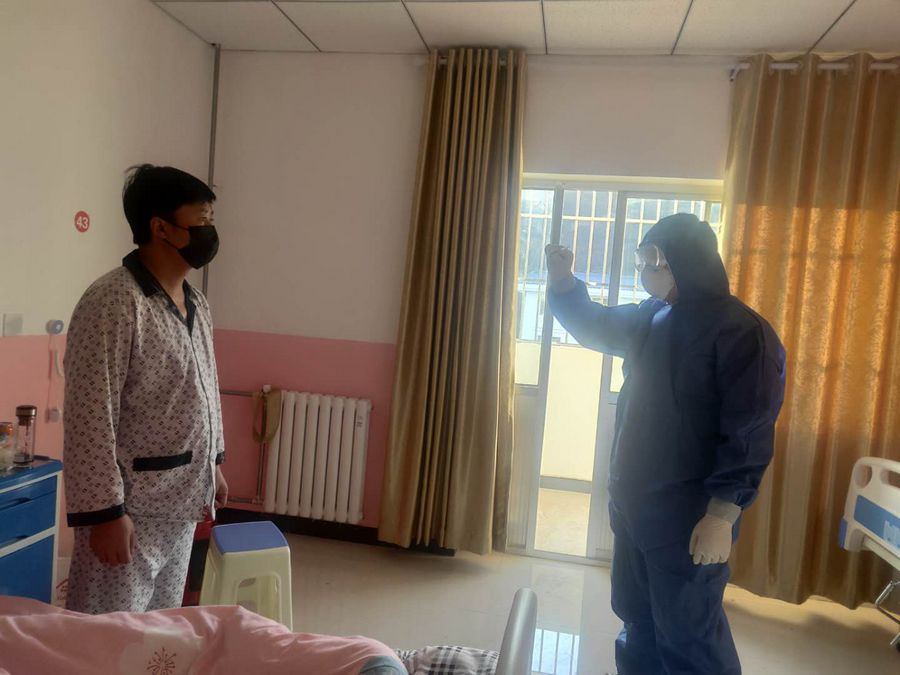 “做为医务工作者,我们应该站好每一班岗,希望在大家的共同努力下,每一位被监测人员的生命体征平稳,我们的付出也就值得了。这次我们进来的6人团队精神很强,每次吃饭两个人一组先给病人送进去,把病人吃的安排好之后,我们出来消毒,处理完其他工作之后才进行吃饭。”韩淑红说。