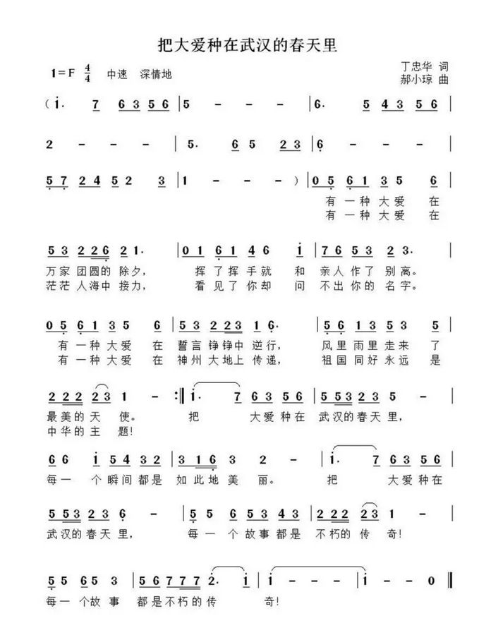 本网礼县讯(赵小春 王书坊报道)“有一种大爱在茫茫人海中接力,看见了你却问不出你的名字。有一种大爱在神州大地上传递,祖国同好永远是中华的主题...”这是礼县音乐家协会为疫情防控斗争创作的歌曲《把大爱种在武汉的春天里》正式登陆网端。