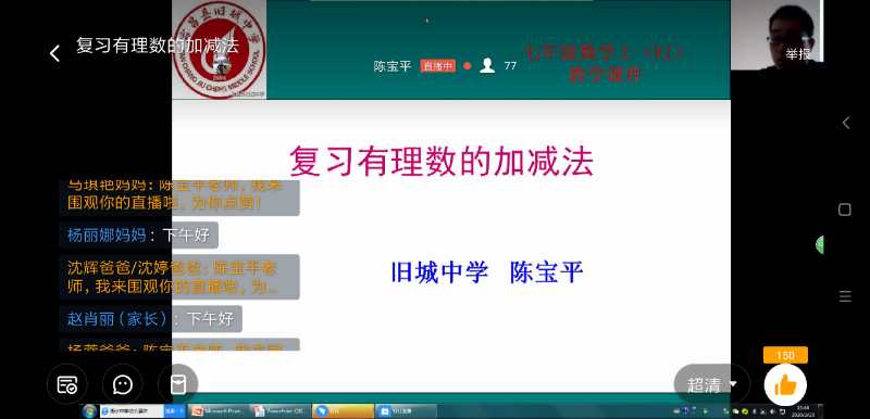 2月25日,宕昌县旧城中学等多个学校的网课相继开通,老师们个个都整装上阵,一堂堂别出心裁的网络直播课有序进行着,学生们个个信心百倍,踊跃参与互动,课堂氛围非常活跃。课前课后老师再三强调:“同学们,疫情防控期间一定要做好自我防护,不要乱跑聚集,外出要戴口罩,回家勤洗手。停课不停学,认认真真做好复习和预习,为开学做好准备。”