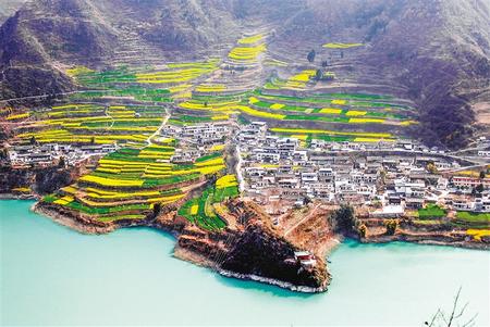2月下旬,文县玉垒乡白龙江沿岸油菜花盛开,春耕生产全面开展。(张凤麟)