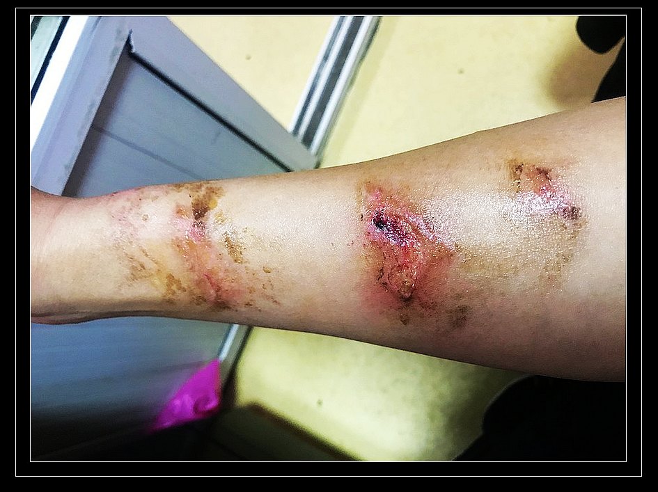 在2月16日上午,在给检测点准备消毒液时,由于室内温度的影响,过氧乙酸在受热膨胀后产生大量气体,在刘超开盖时过氧乙酸原液发出“砰”的一声巨响,过氧乙酸爆了,当时喷洒出的消毒液入溅到他的眼睛和胳膊上,眼睛已睁不开,他赶紧用自来水进行冲洗,冲了好一会儿还是睁不开眼睛,帮他冲洗的同事将这一情况及时上报给卫生院负责人进行处理,由于当时只顾着冲洗眼睛,没有顾及胳膊,当眼睛冲洗完后,发现胳膊已经烧烂,送到县中医院眼科进行检查治疗,眼科大夫说:“眼角膜没事,结膜充血,现在必须好好休息”。