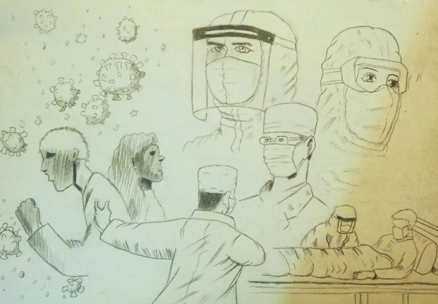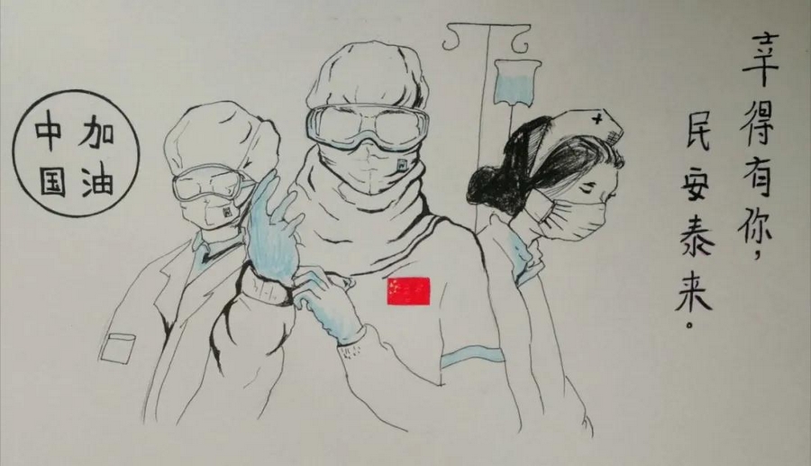 疫情防控期间,徽县一中高二(10)班学生用稚拙的画笔画出了心目中的“战疫”英雄,感谢他们为我们拼过命,向英雄致敬!通讯员 何强
