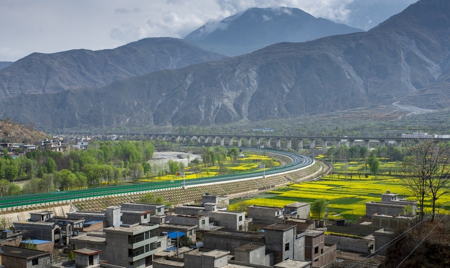 3月27日,走进沙湾镇,突降阵雨,早春的白龙江畔,菜花飘香。雨点落在叶子上,留下一串串晶莹的水珠。雨过天晴,沙湾镇沙坝村大片的油菜花显得更加鲜艳欲滴,远远望去,村庄的一块块油菜花田,金黄透绿,很是养眼。(代志平)
