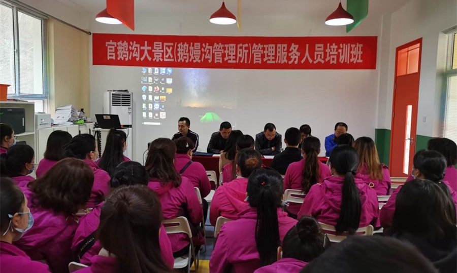 为进一步强化景区从业人员服务意识,提升景区管理水平,优化队伍知识结构,展现官鹅沟旅游服务良好形象,开园后能够更好的服务游客,3月26日,由官鹅沟大景区管委会鹅嫚沟管理所组织开展的景区管理人员业务培训班在鹅嫚小学举行开班仪式。
