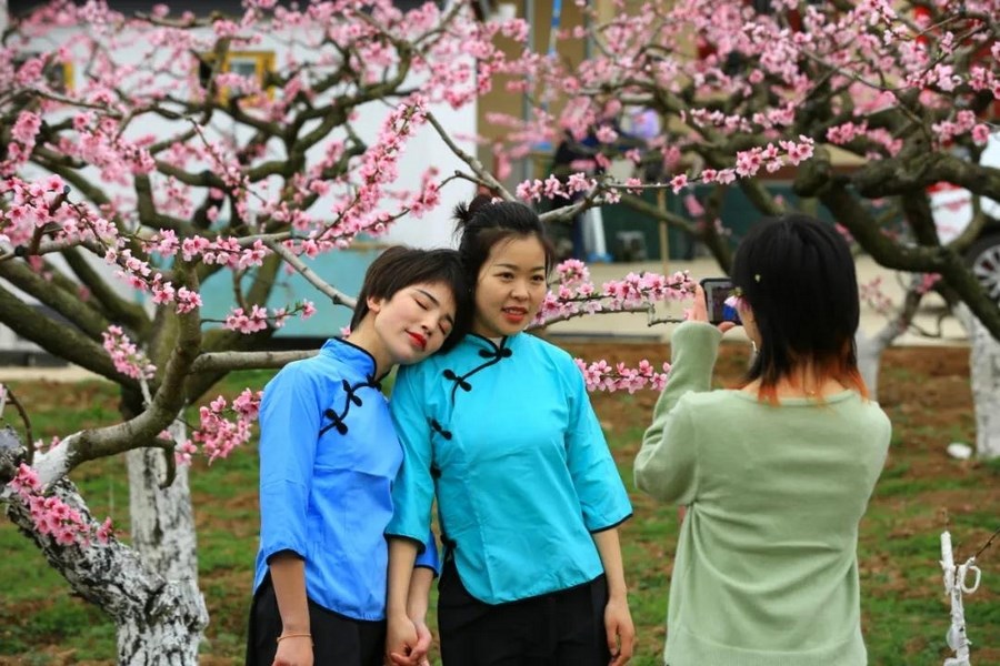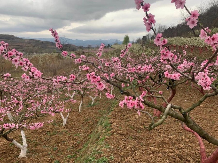 这遍野的果树,我们现在所看到的山坡上、梯田里、村庄平地里这无边无际的花海,桃花、杏花、梨花、李子花……各种果树花五彩斑斓,清新芬芳,这些给予我们无限美好,让我们恍若置身桃林仙境的花朵,等落英缤纷后,又要挂果了。