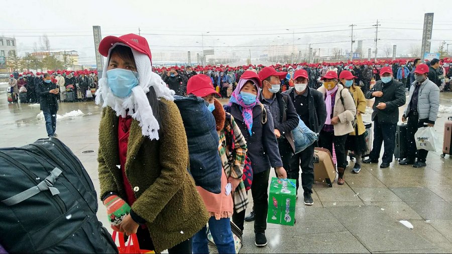 风雪中的宕昌县第五批赴疆劳务工欢送仪式后,来自将台、兴化、车拉等乡镇的1110多名等待务工的群众已抑制不住激动的心情……大家怀揣梦想,向着美好生活出发。