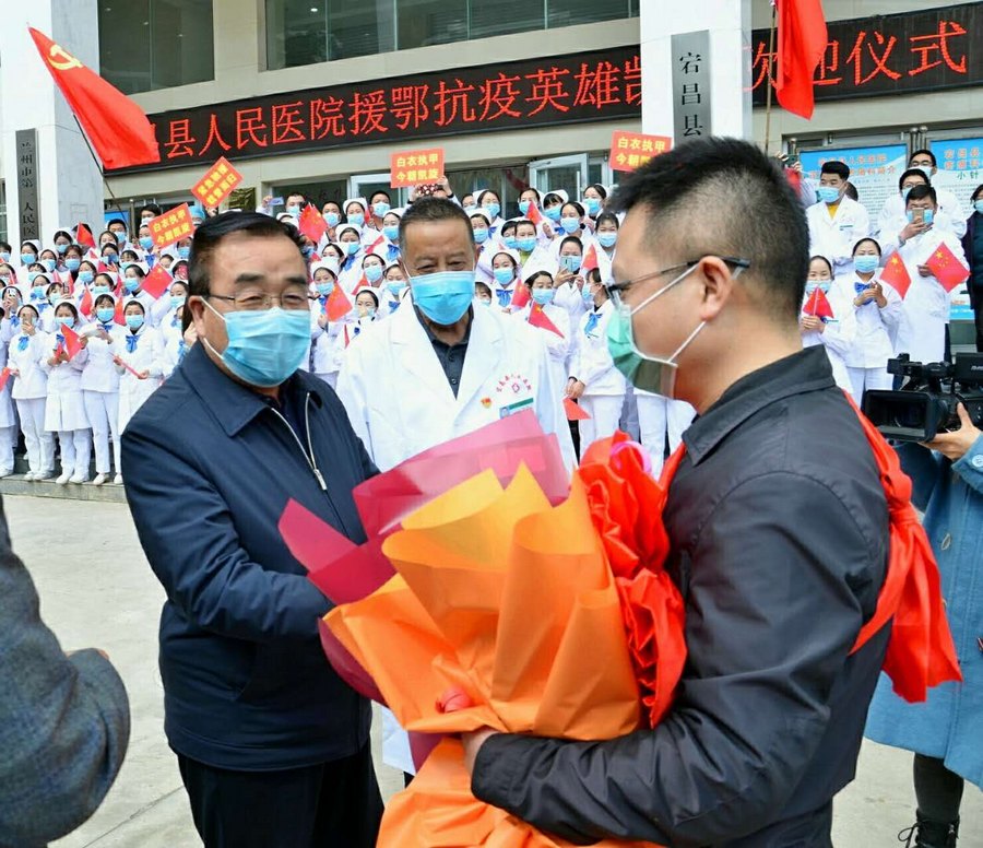 4月8日,甘肃省第六批,宕昌县第二批驰援湖北的医疗队员李斌,在圆满完成支援湖北医疗救治任务后平安返回宕昌 。