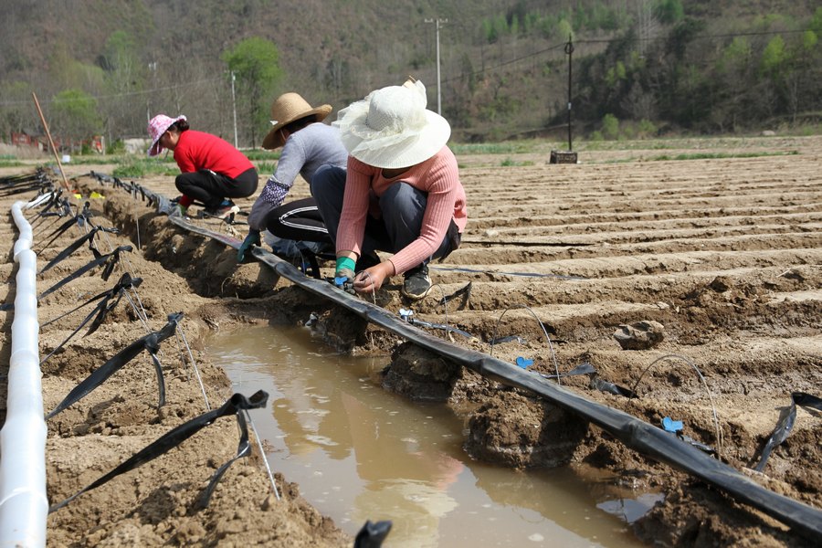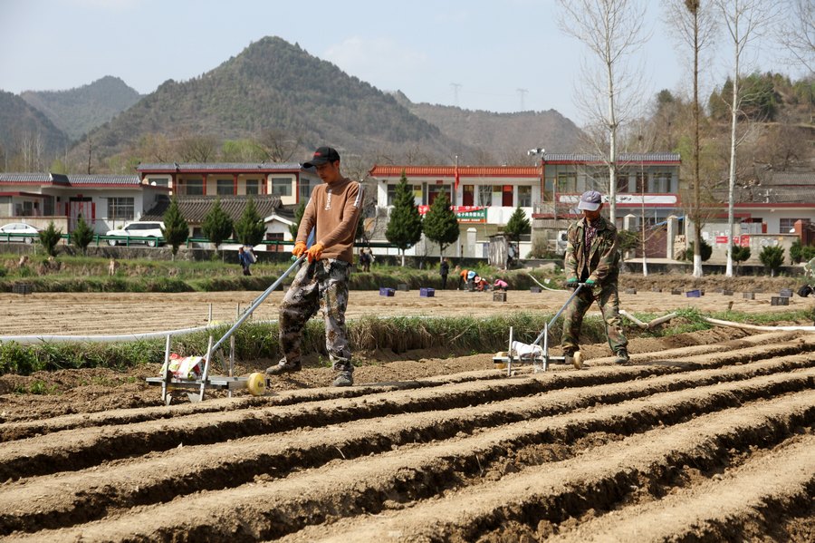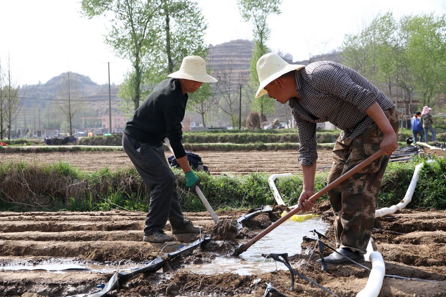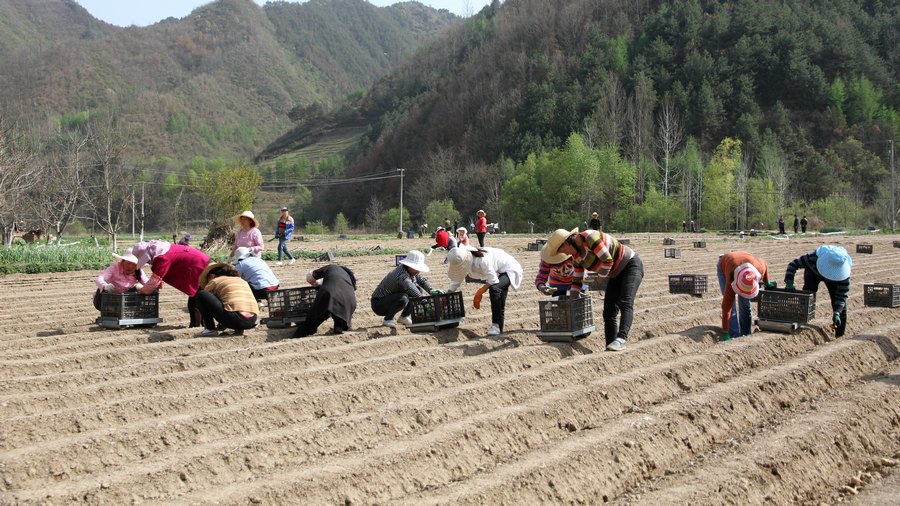 随着气温升高,连日来,徽县江洛镇的群众正忙着抢抓农时播种生姜。搬运姜种、铺设水管、挖沟种姜,覆盖地膜……田间地头里如火如荼。