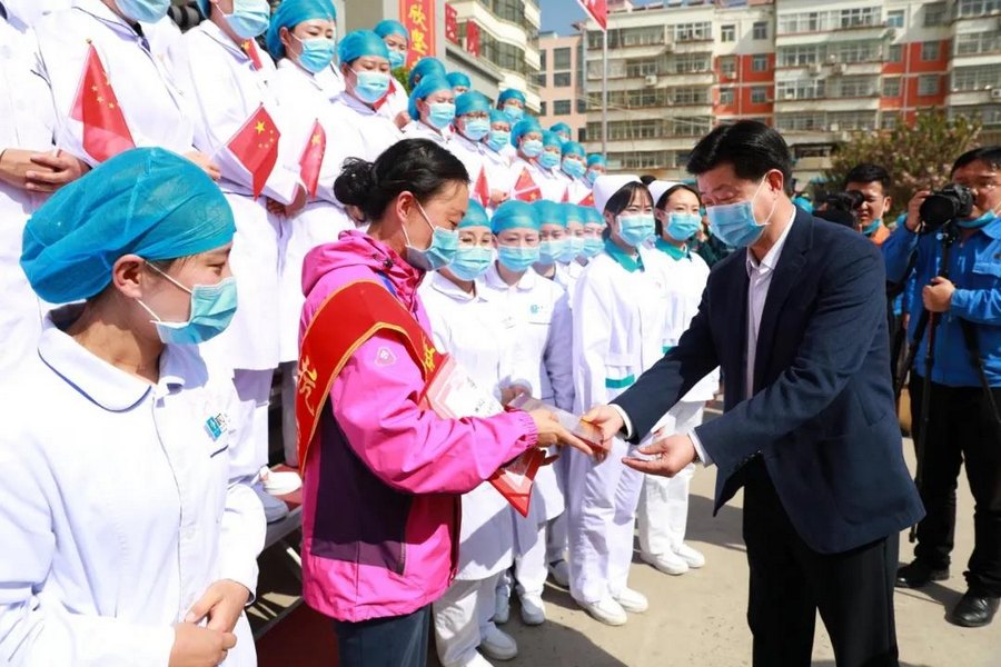 魏琳对大家的欢迎表示感谢,她说,作为甘肃省第四批驰援武汉医疗队成员之一,此次援鄂之行,使她由一名普通医护人员成功蜕变“白衣战士”,在武汉优抚医院工作的日日夜夜将是她此生最宝贵的经历和回忆,在各级政府、院领导、社会各界爱心人士无微不至的关心下,在战友们、同事们鼓励下,圆满完成了援鄂医疗队工作任务,在今后的工作中,将以更加饱满的热情,更加优良的作风,投入新的战斗,再创新的佳绩。